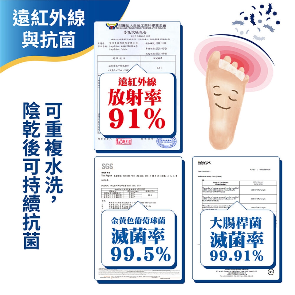 抗菌防臭避免腳趾悶熱滋生細菌。