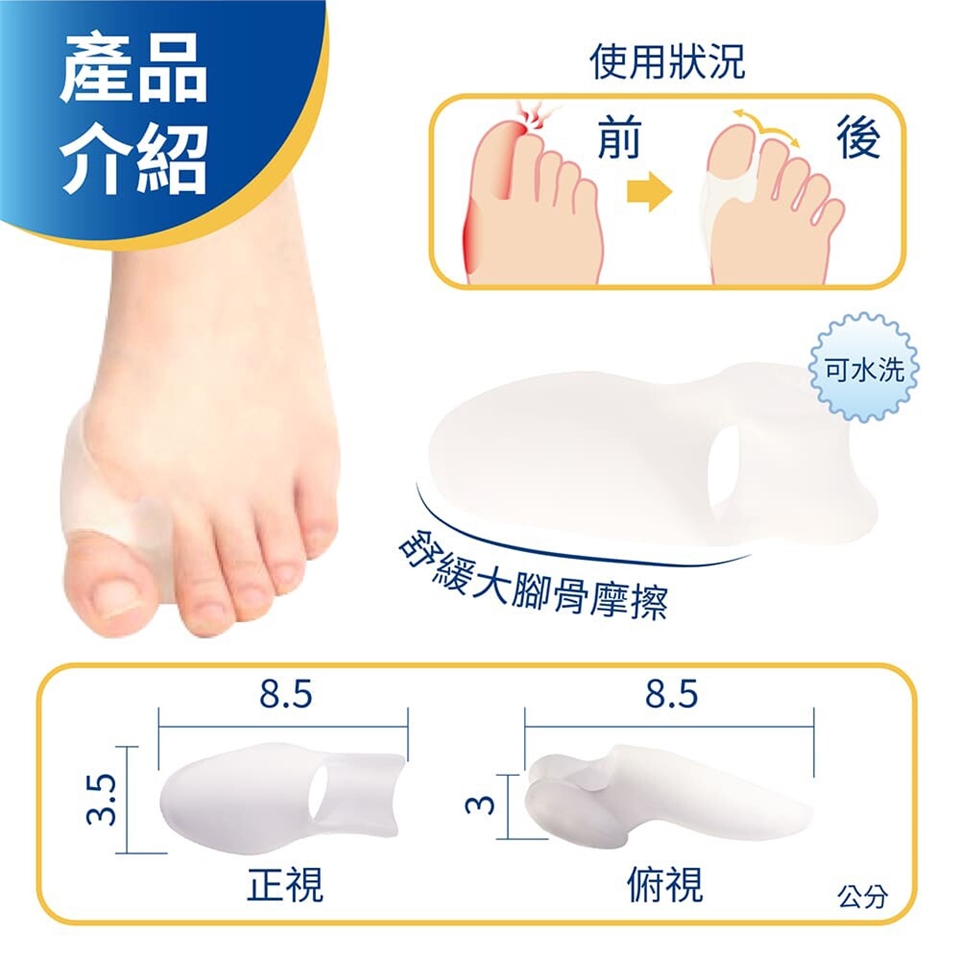 有效分開重疊趾、降低拇趾外翻摩擦、舒緩腳趾肌膚。