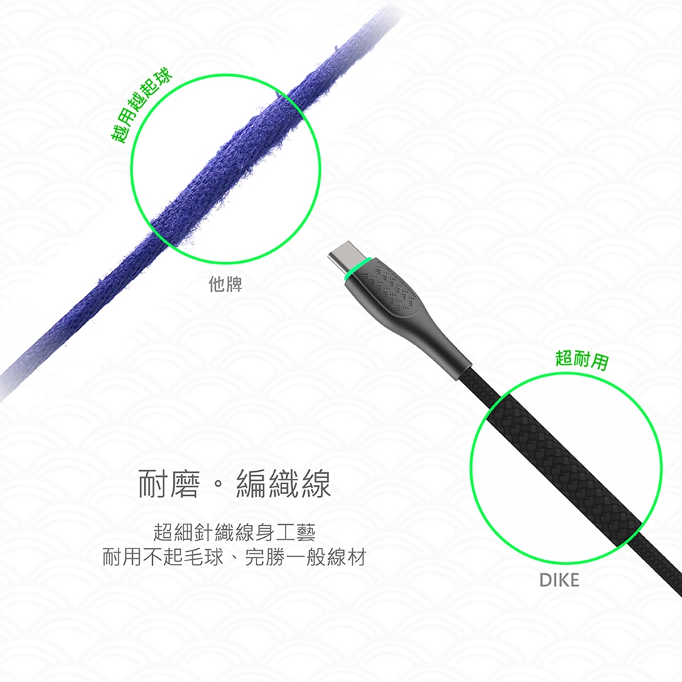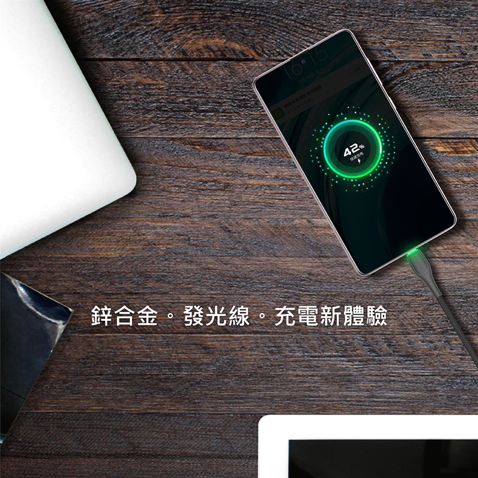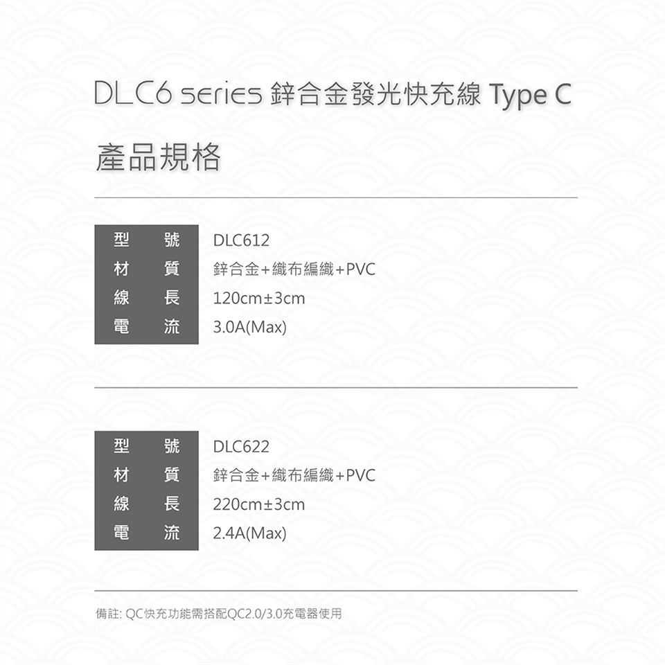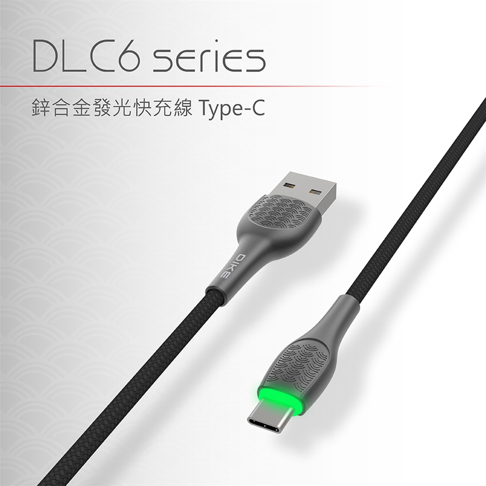 DIKE 鋅合金發光Type-C-2.2M 快充線 DLC622GY
