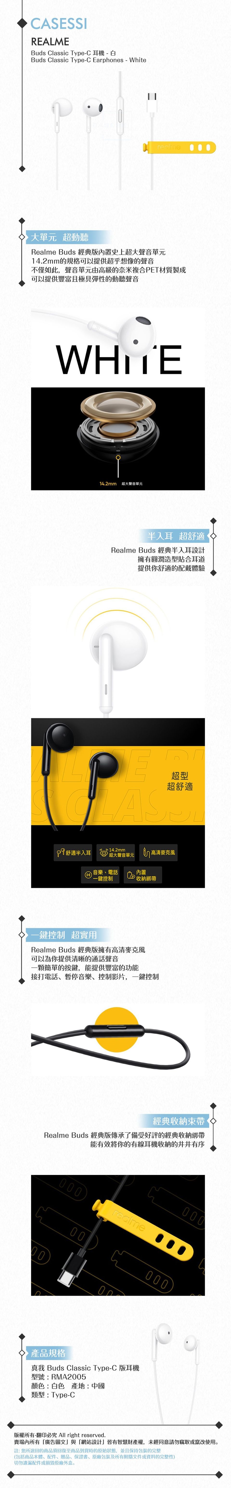 品名:真我Buds Classic 經典版線控耳機 Type-C