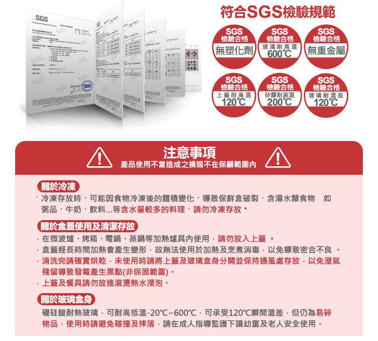 2.請勿用於明火直接加熱,以防止產品破損;堆疊收納時請加上蓋子以免產品破裂。