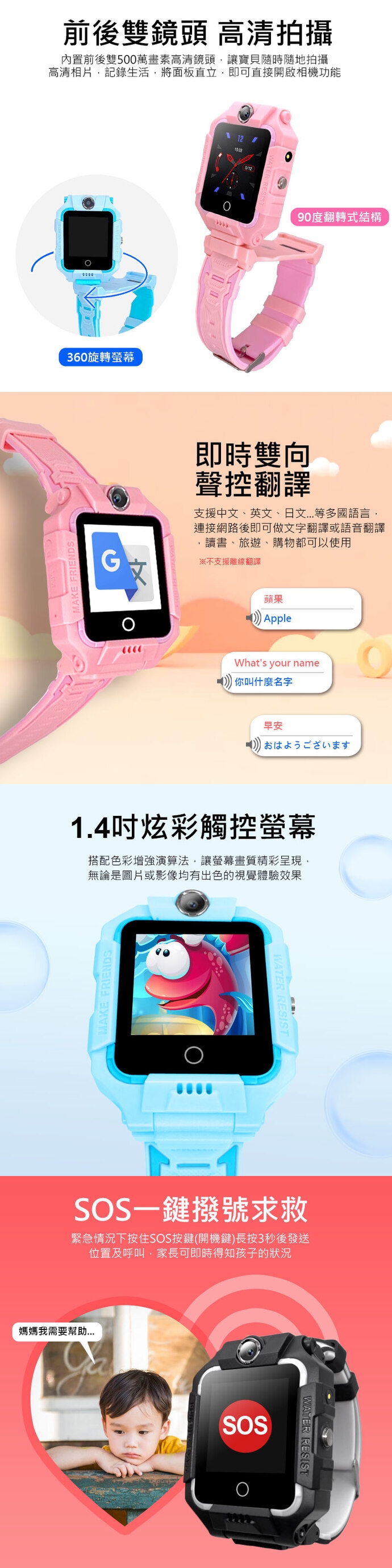 ★ 90度翻轉錶面,雙鏡頭即開即用