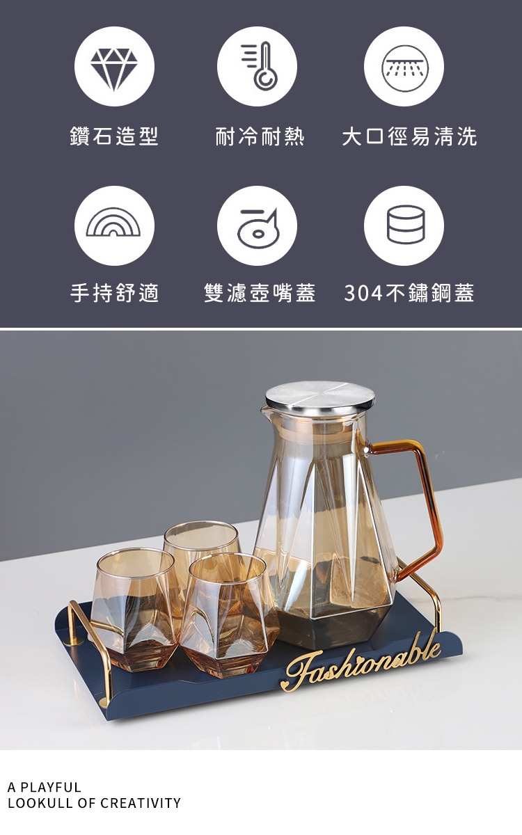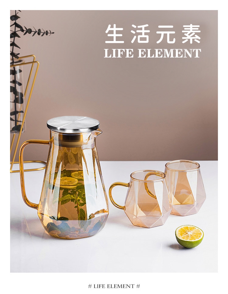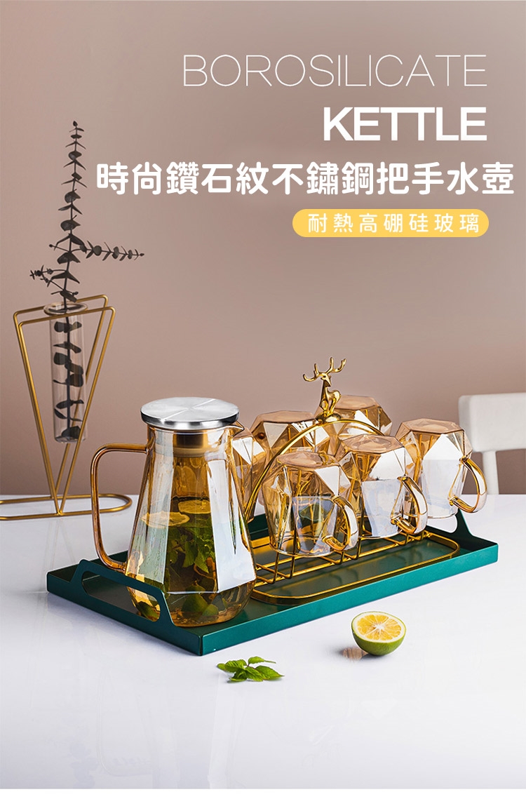 品名:耐熱玻璃時尚鑽石紋款不鏽鋼把手水壺1500ML