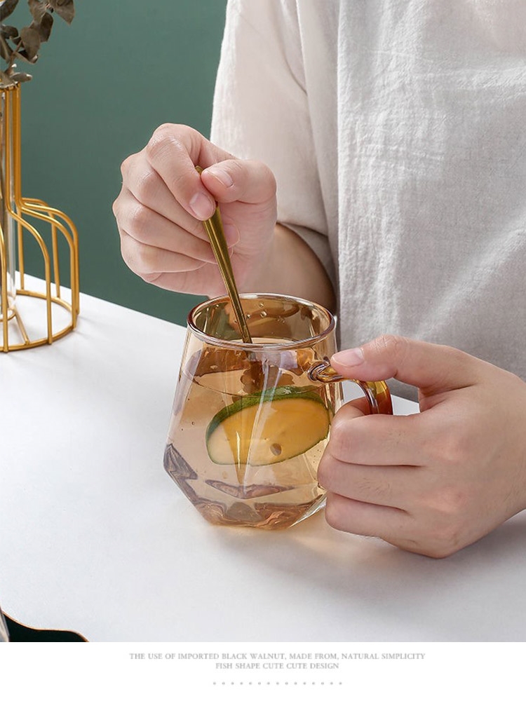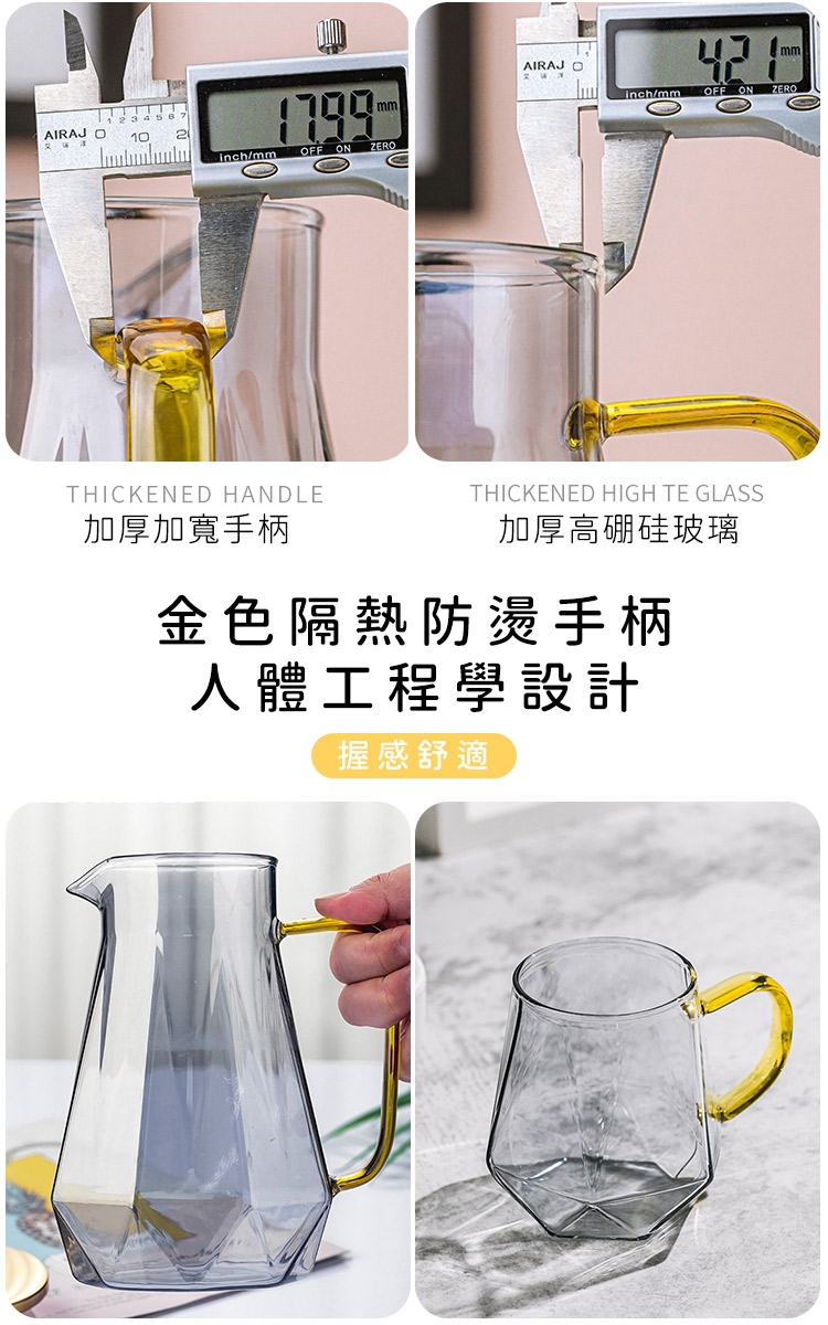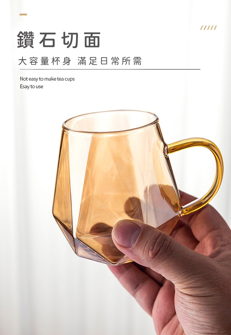 品名:耐熱玻璃時尚鑽石紋款把手水杯300ML
