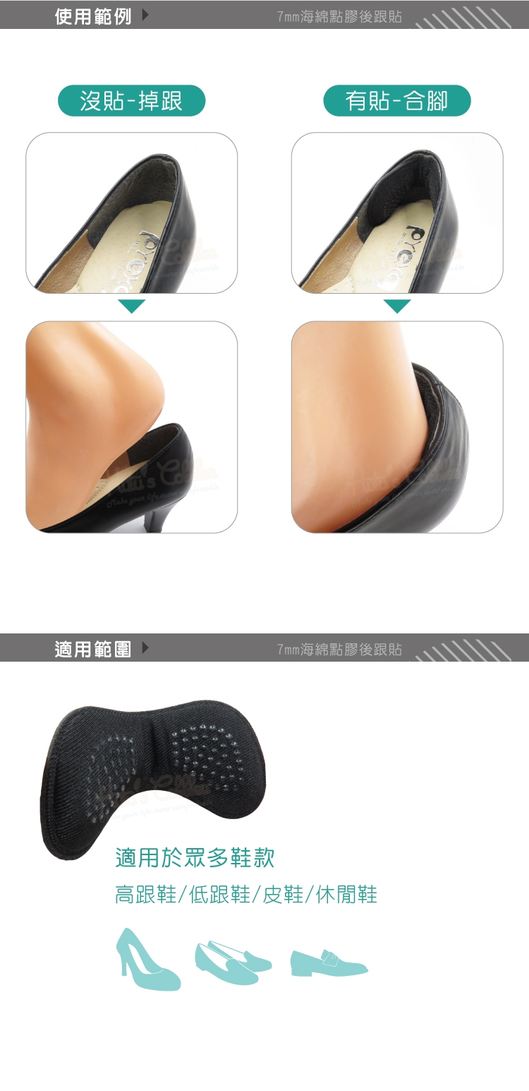1.保護腳後跟,柔軟防磨,貼於鞋內,