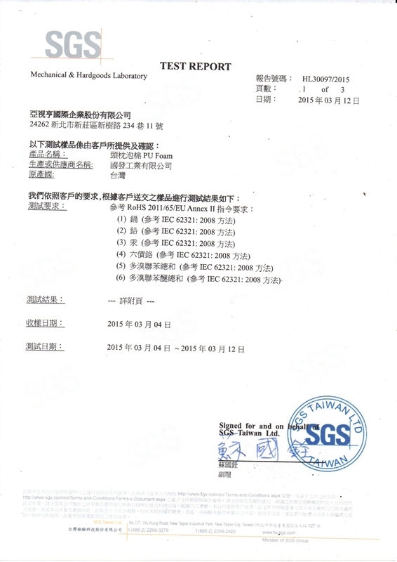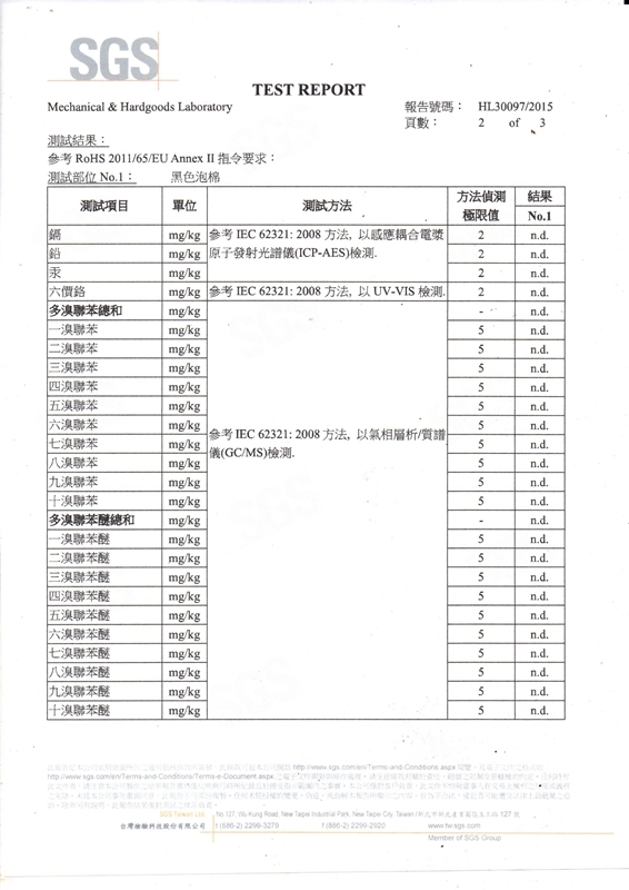 (2) 使用環保乳膠擁有SGS檢驗證書證明