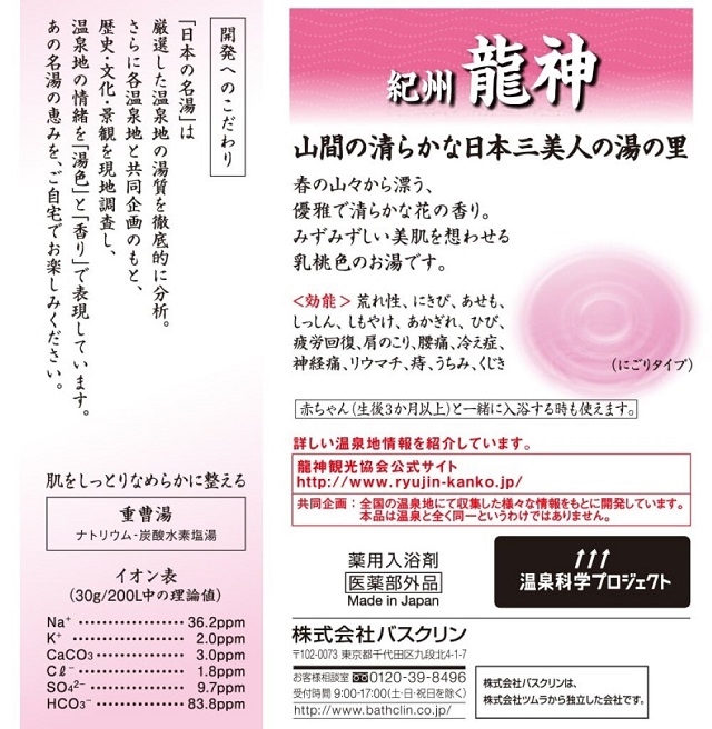 浴缸(約200L)水量、倒入30g入浴粉,充分攪拌混合即可