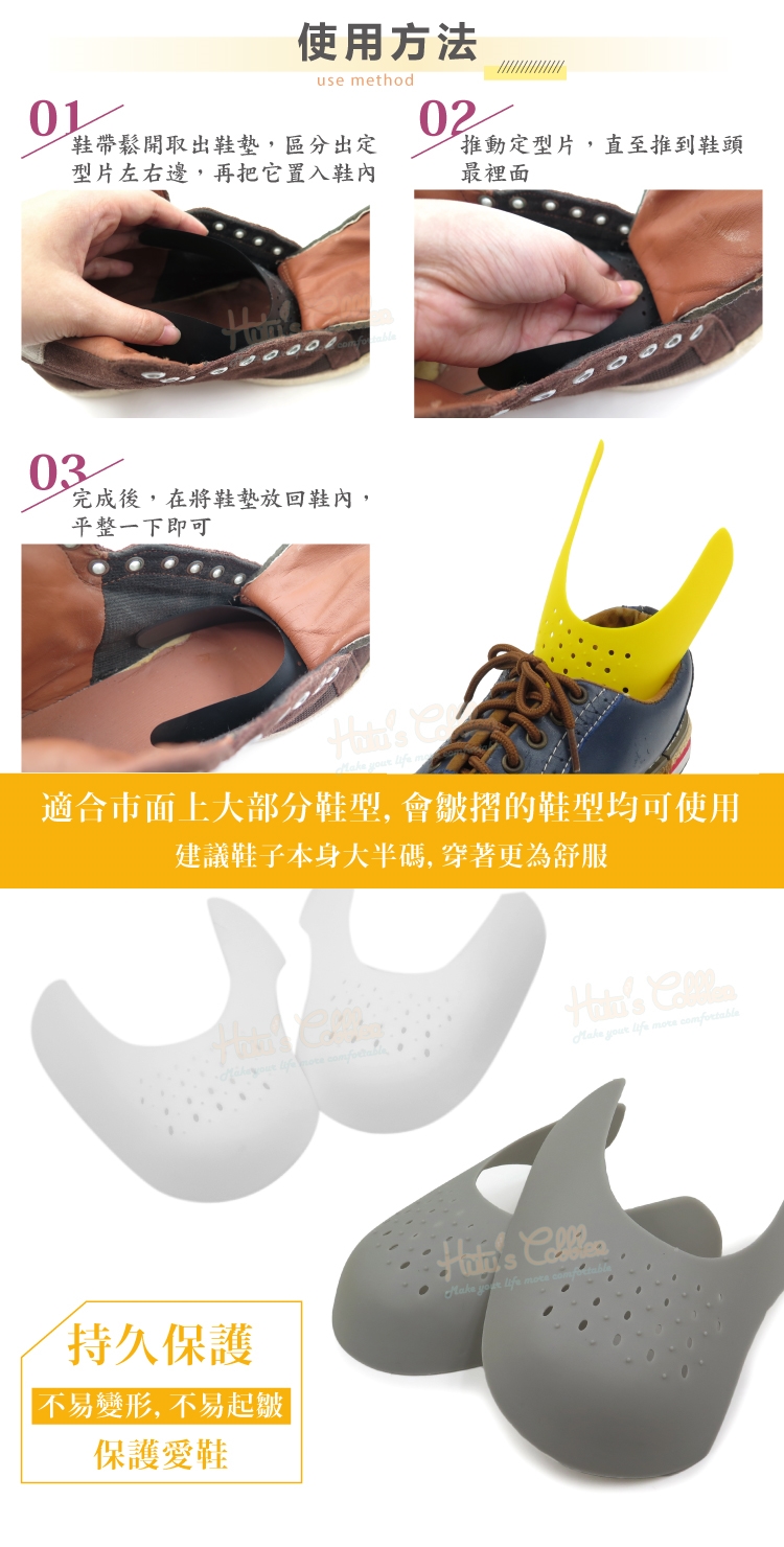 在行走時能撐起鞋頭、維持平整,防止鞋面起皺,保持良好的外觀