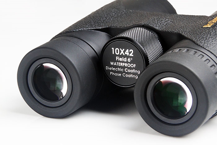 望遠鏡內部機身結構材質採用鋁合金材質,同時具備堅固與相對輕便的優點。外部橡皮採用高品質橡膠外皮,彈性堅韌,無臭味,長年使用橡膠不易沾黏。可安全地保護內部光學鏡組,減少因撞擊或掉落產生的損害,符合人體工學設計,提供最佳舒適度。