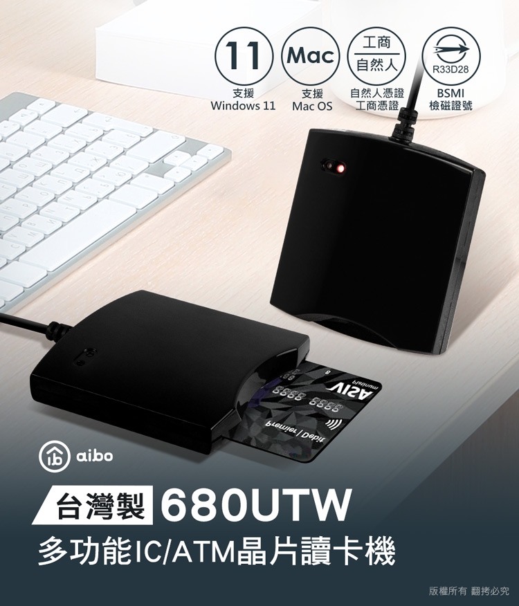 aibo 680UTW 多功能IC/ATM晶片讀卡機(台灣製)-黑色