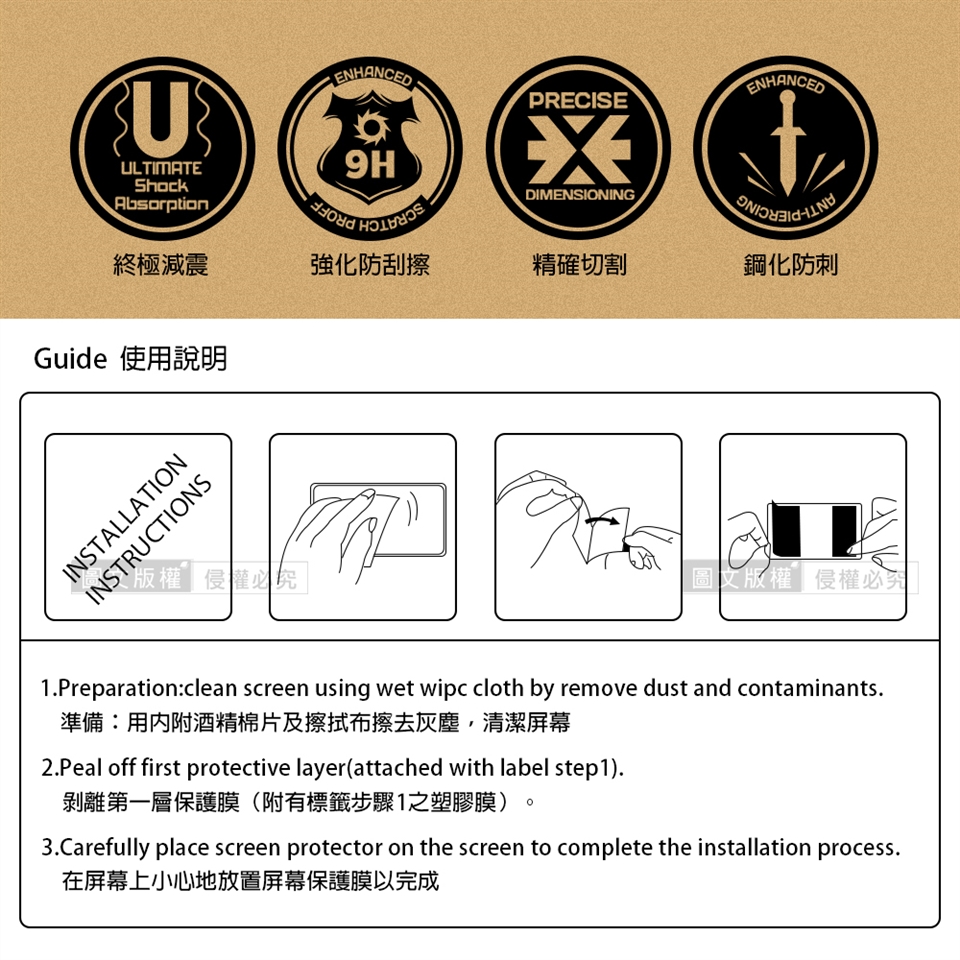 保護貼屬一次性商品,請務必先比對平板孔位、大小是否符合需求,再行使用;如底膜撕除後恕無法進行退換貨處理。
