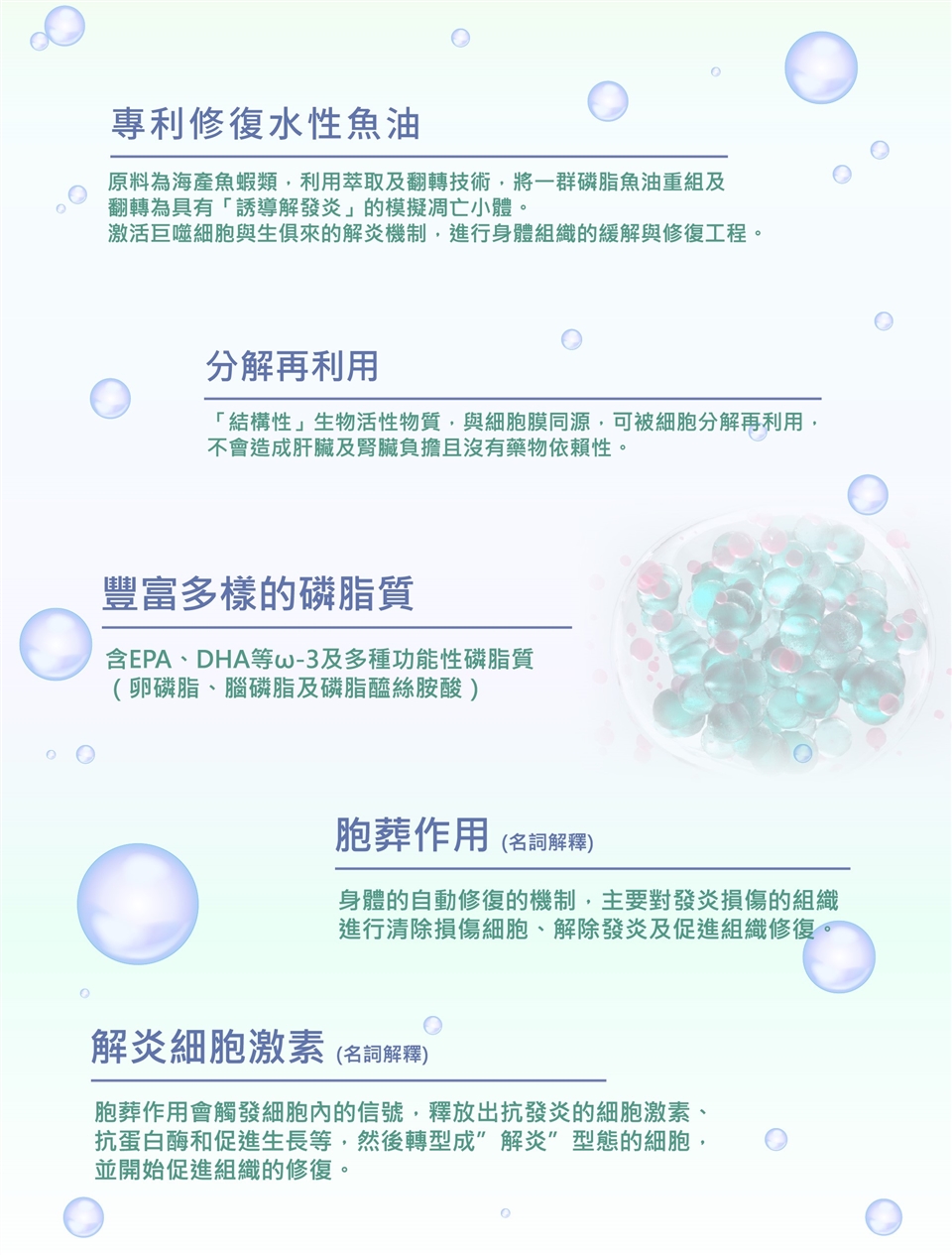 |含M2專利修復水性魚油,喚醒M2型巨噬細胞,有助於組織的修復。