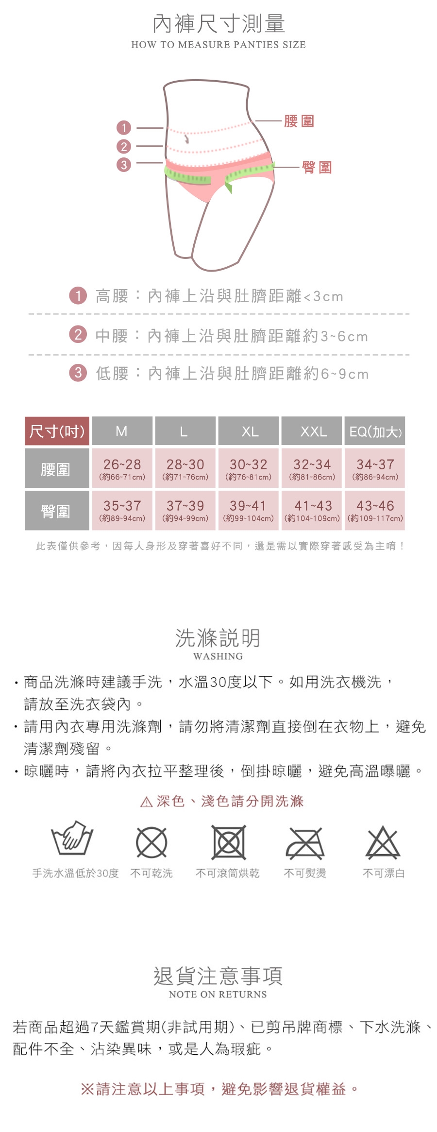 ◆內衣褲屬貼身物品,辦理退換貨時,除商品本身瑕疵外,一經剪標或下水恕不接受退換貨。