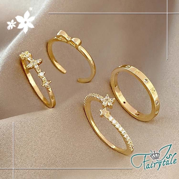時尚彈性開口戒指,四件組合散發高雅質感,展現出亮麗炫色設計,