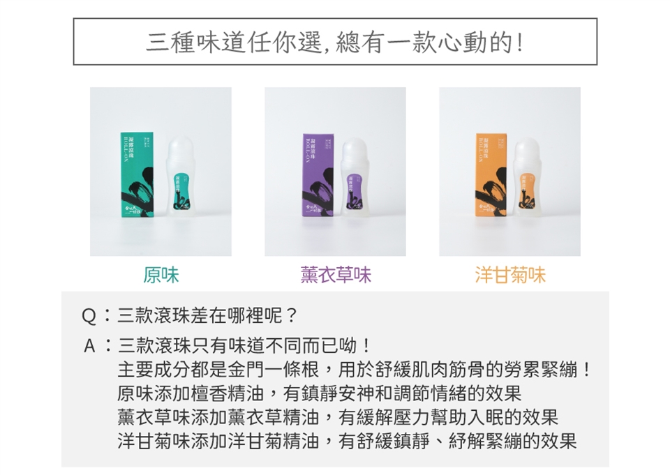 內容物:原味滾珠1罐+薰衣草滾珠1罐+洋甘菊滾珠1罐