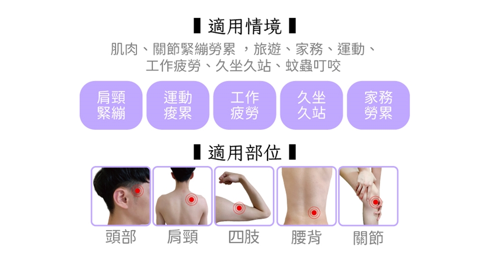深層舒緩家事勞累、工作疲勞、運動前後、手機/電腦族肩頸不適等日常疲勞