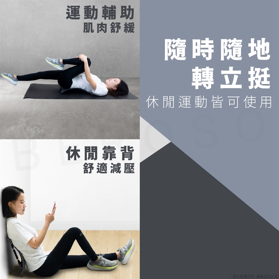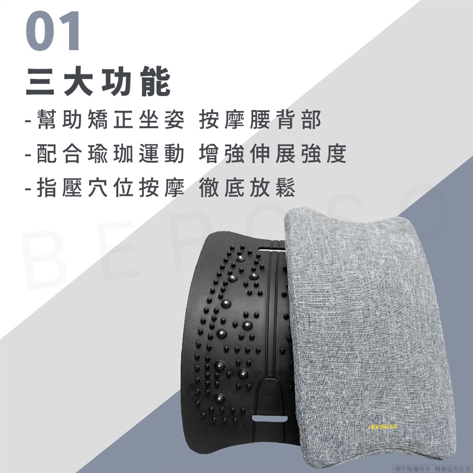 商品名稱:Beroso倍麗森寬版旋轉式磁石腰椎按摩拉背器(附布套)