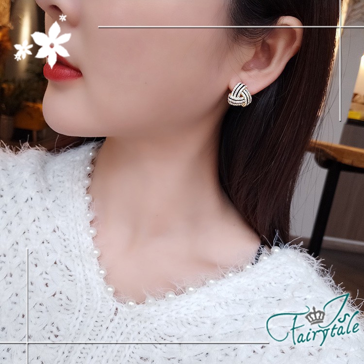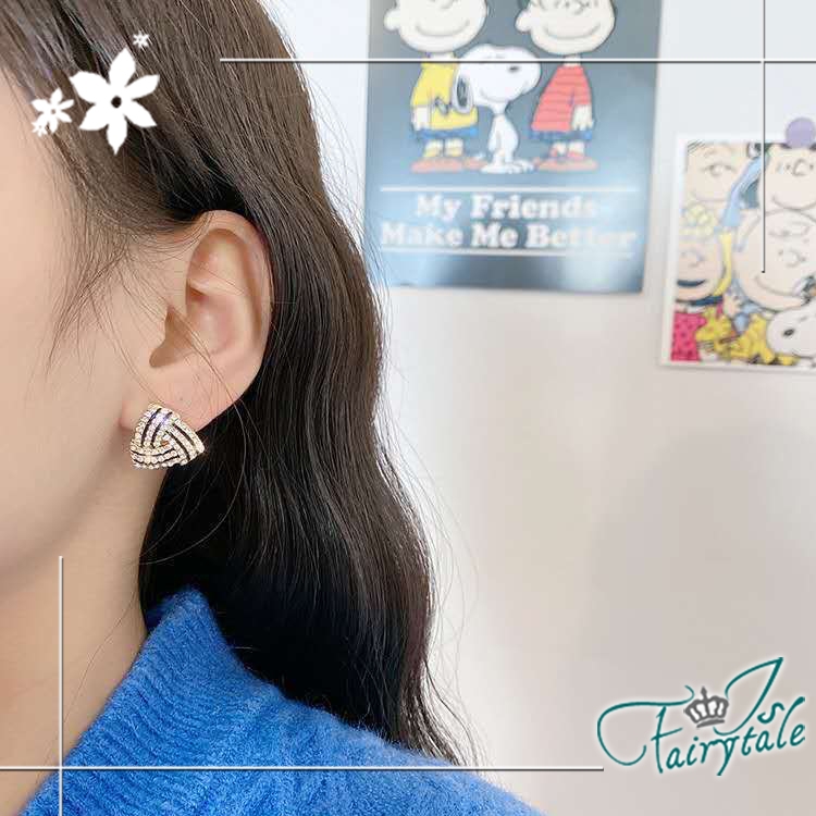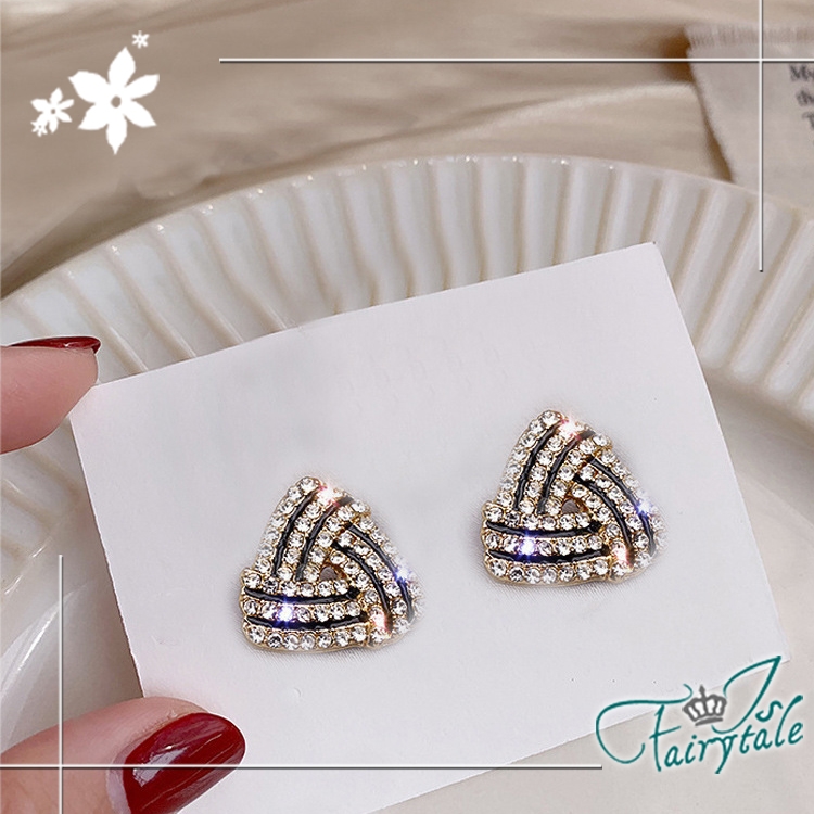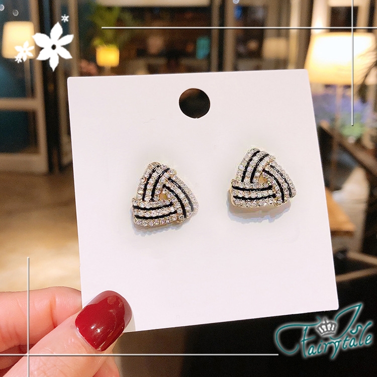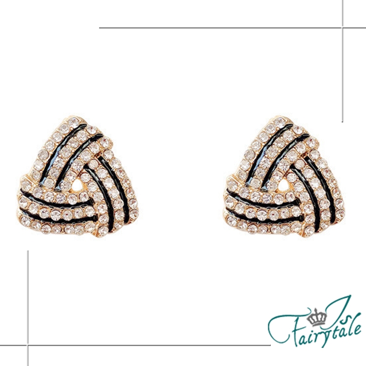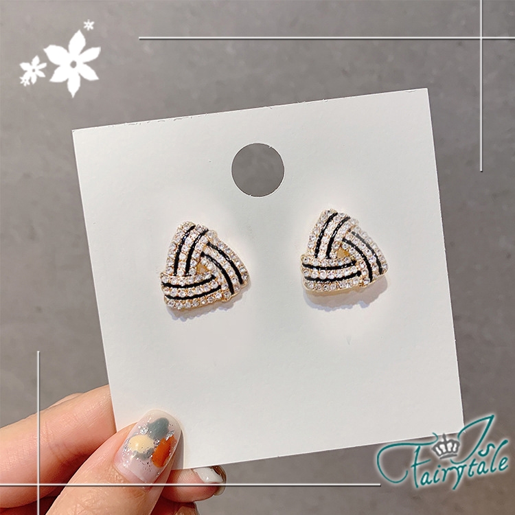 幾何三角黑白水鑽耳環,超然精品質感提升,