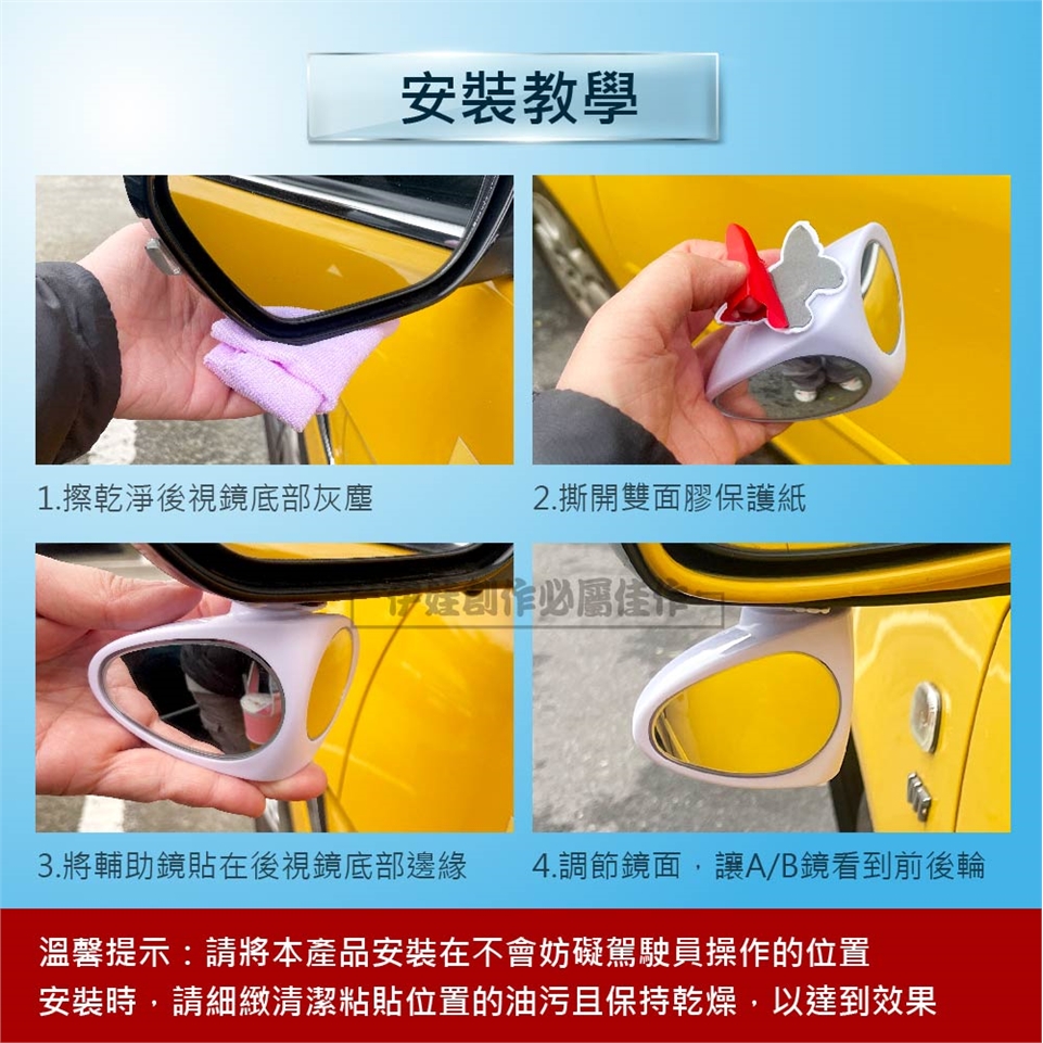 商品詳細介紹 使用方法說明 1.清理乾淨安裝位置的灰塵和汙垢2.撕開本產品雙面膠的保護膜,將其粘貼在選定位置,稍加用力按壓3.粘貼好後,可旋轉底座、按壓鏡面,調試合適的反射角度視野 注意事項 橢圓形玻璃可微調角度,圓形玻璃不可調整角度