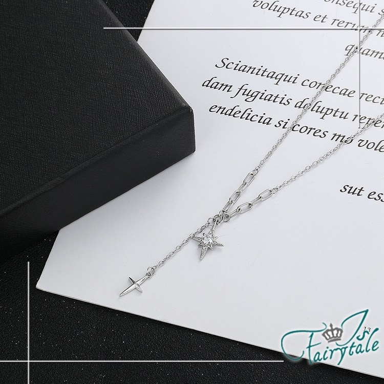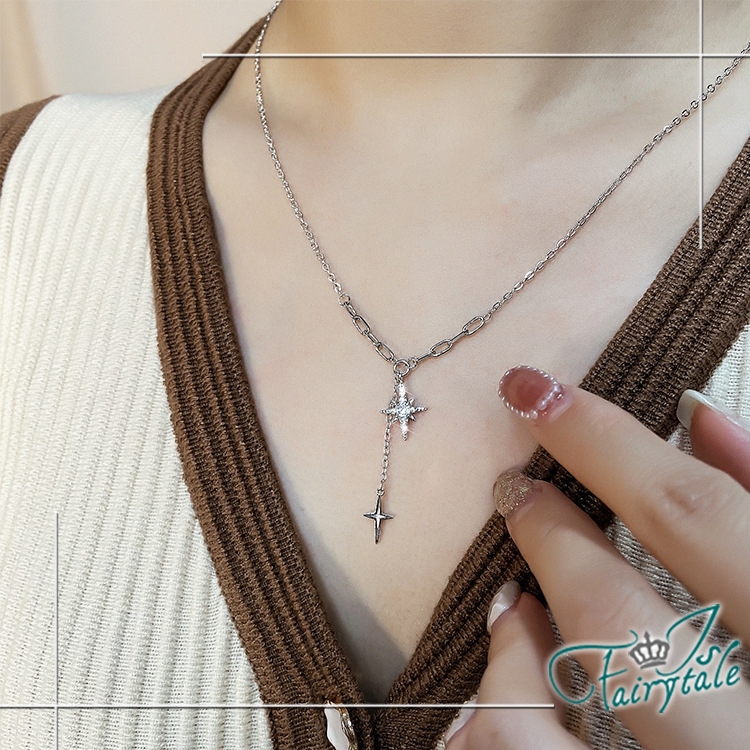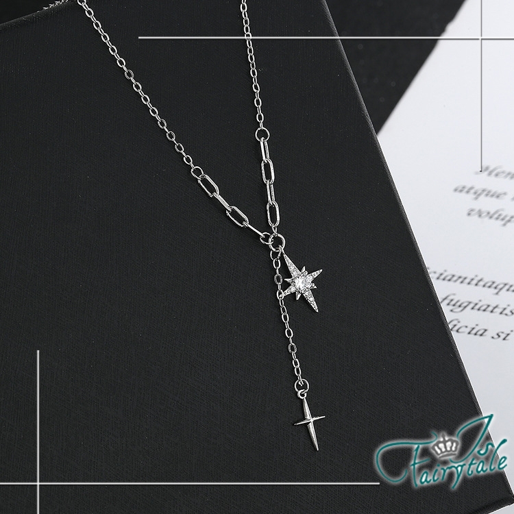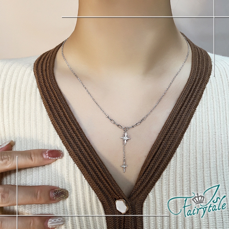 十字光芒水鑽造型款式,韓版流蘇街頭鎖骨短鍊,