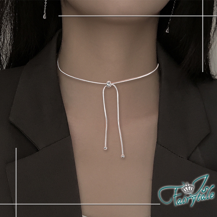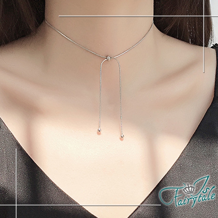 簡約伸縮圓珠打結造型,韓版流蘇風格鎖骨短鍊,