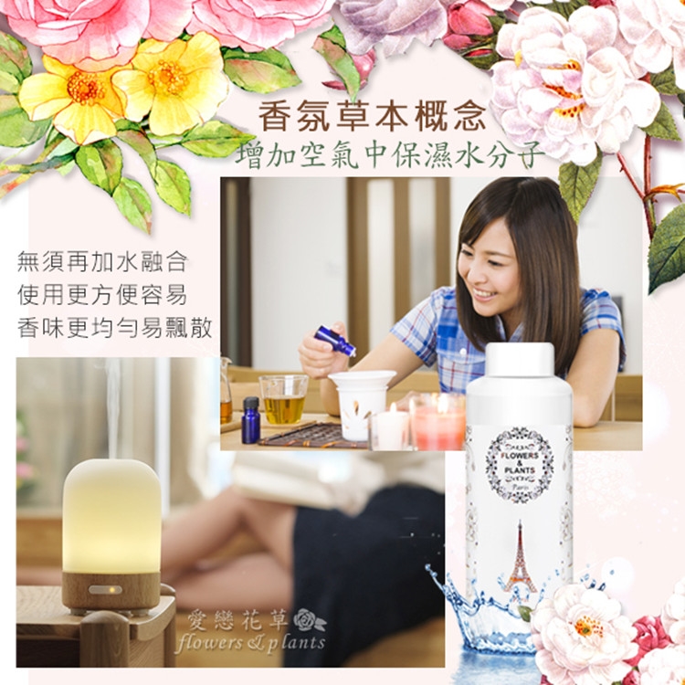 將保濕水氧薰香精油直接倒入水氧機或是薰香燈(薰香燭台)中,無須再加水。精油擴香飄散使室內充滿愉悅的香氛,宛如從美麗的花朵中飄散出花香的芬芳,香氣清新怡人,令人流連忘返,讓您彷彿置身在繁花盛開的花林之中。