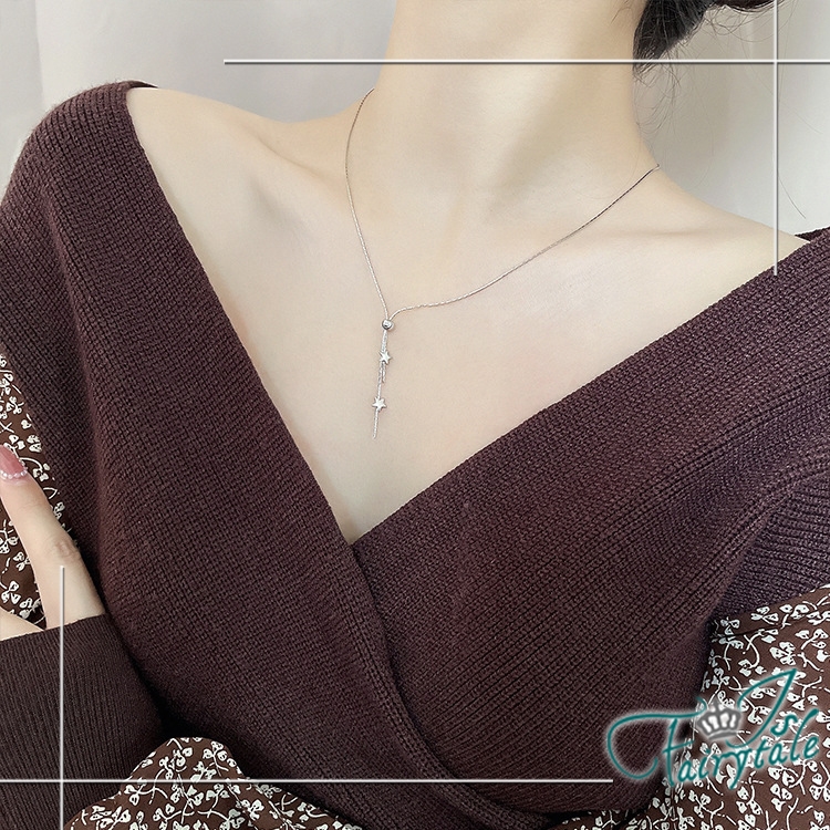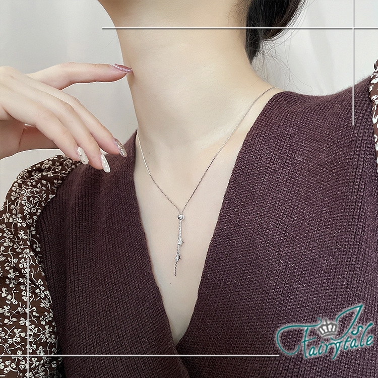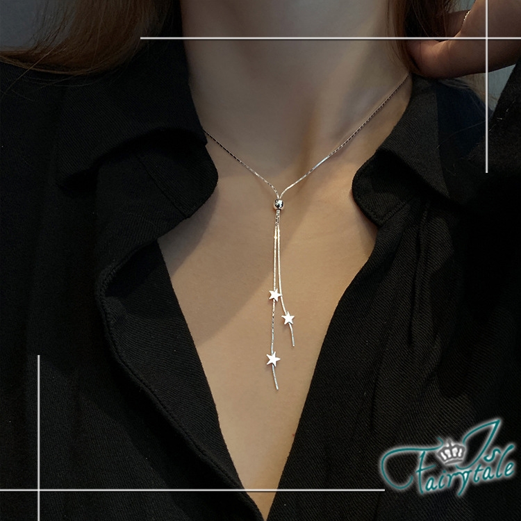 簡約白金星星造型款式,韓版流蘇街頭鎖骨短鍊,