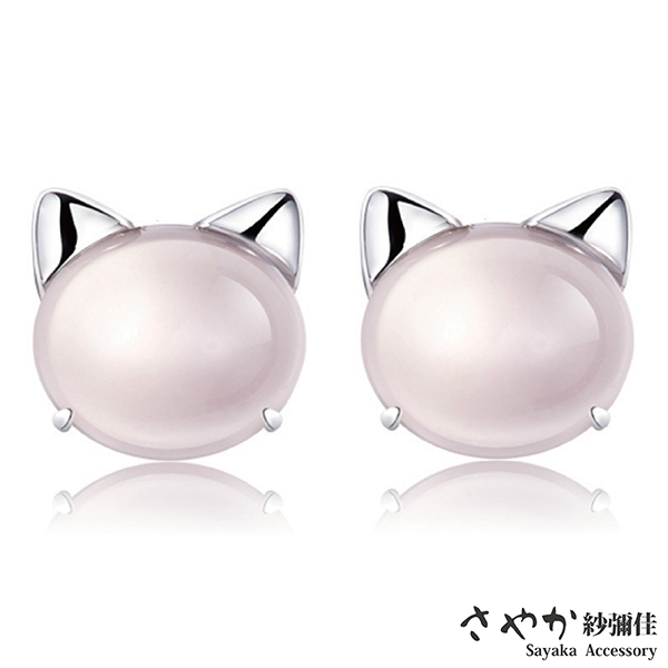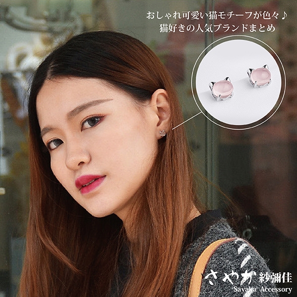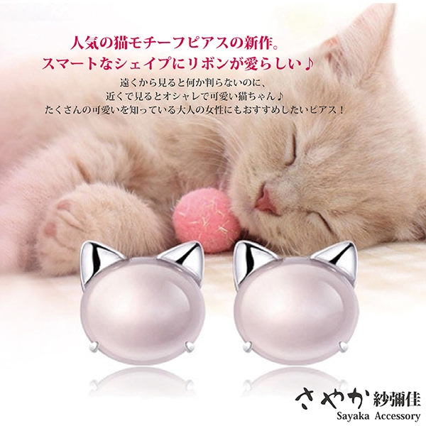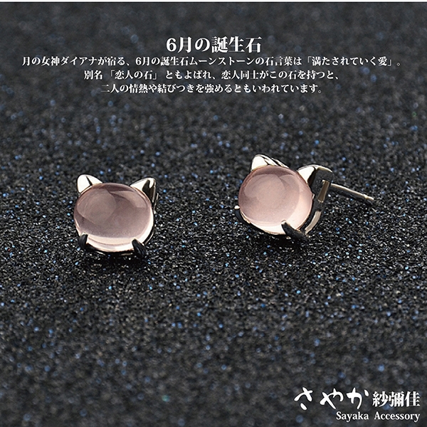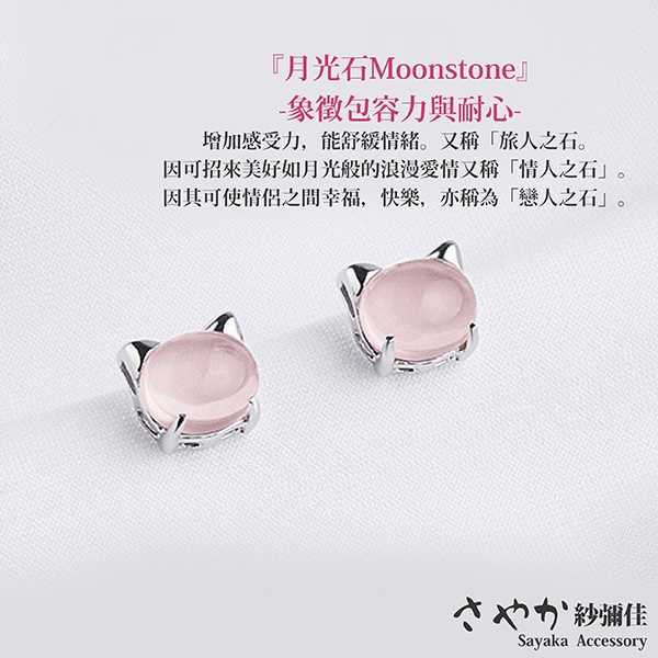 鑲崁粉色月光石,適合喜歡喵系列商品的可愛女生,華麗的風格也適合贈送給成人女性,