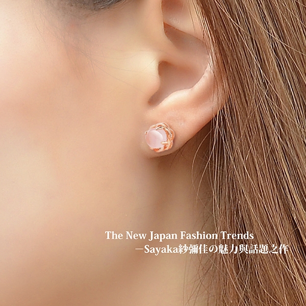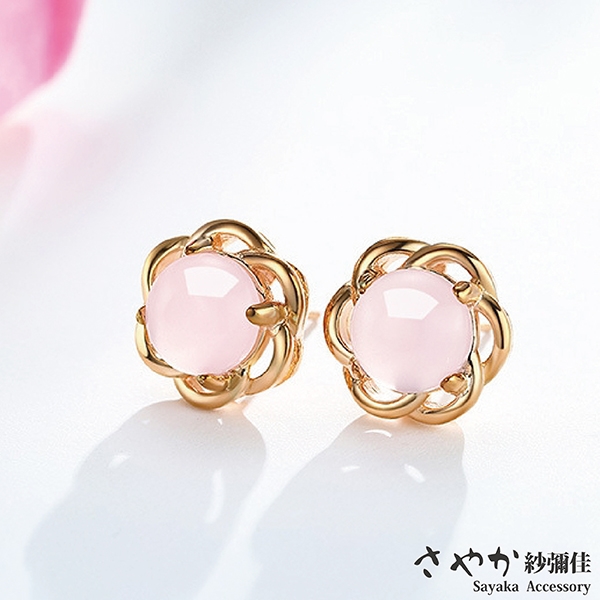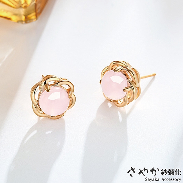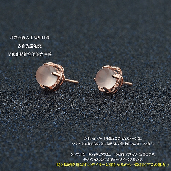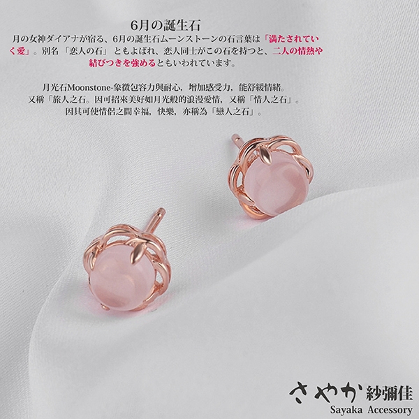 精緻的鏤空六瓣花典雅設計,鑲上晶瑩剔透的粉色月光石,