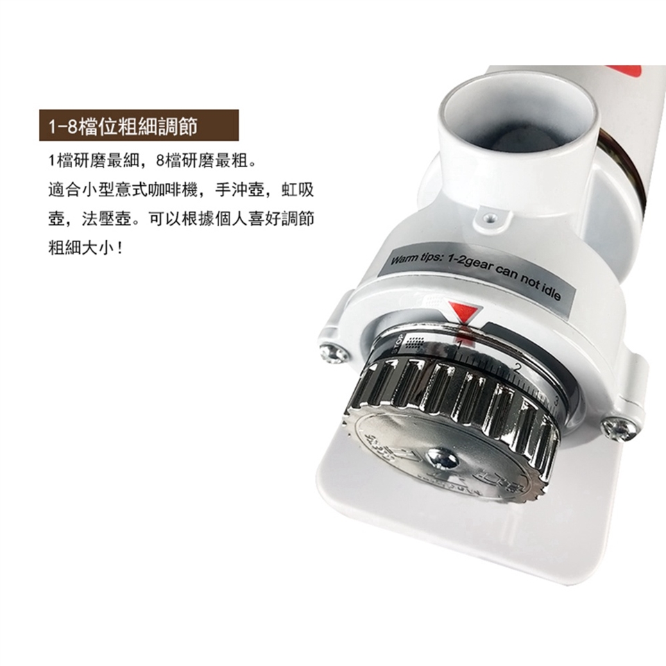 刻度調整上方號碼代表咖啡粉的粗細,1檔為咖啡粉最細,8檔咖啡粉最粗,請自行依個人