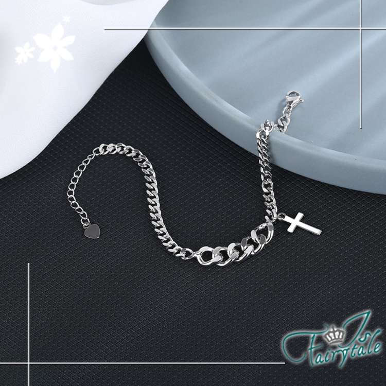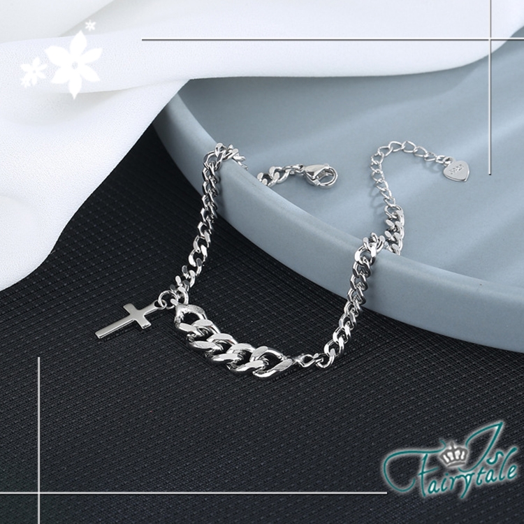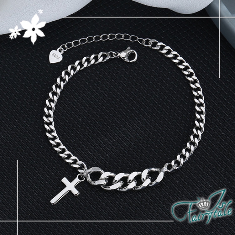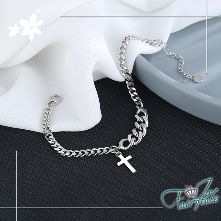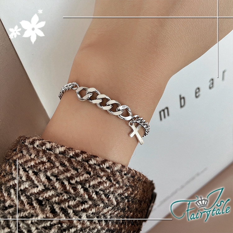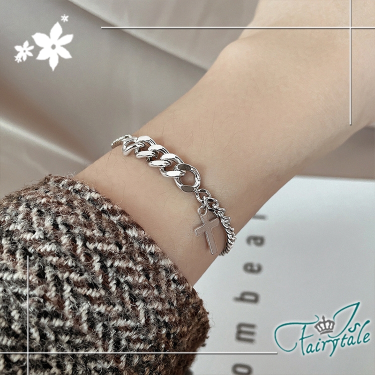 簡約十字架造型,搭配中性粗細麻花手鍊,