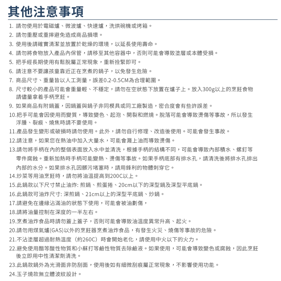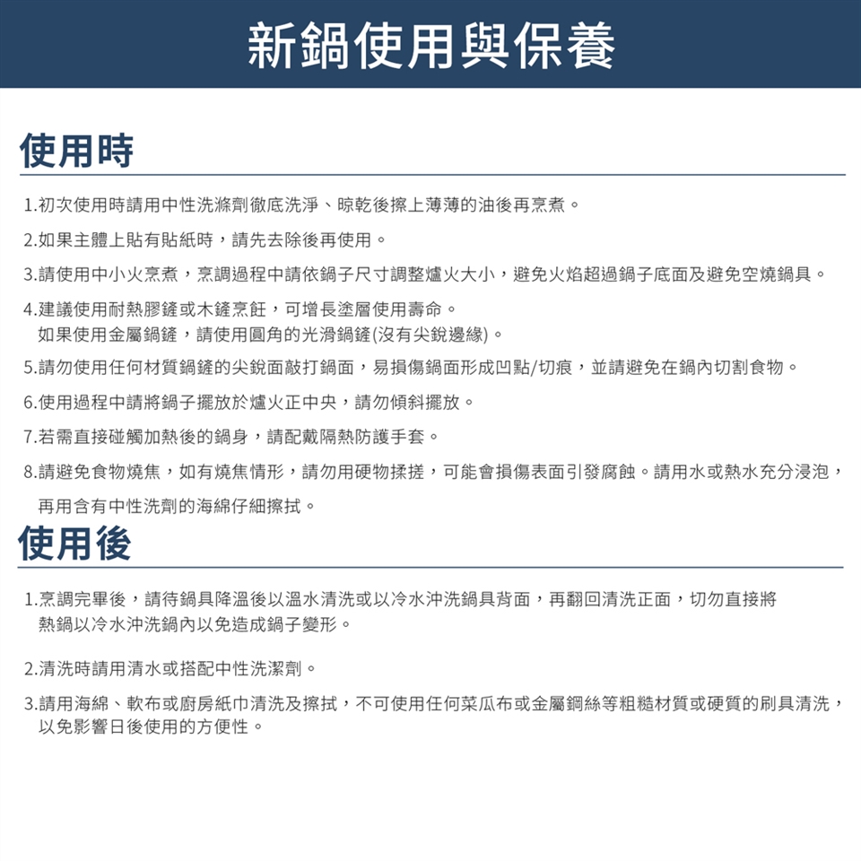請見內文圖【新鍋使用與保養】