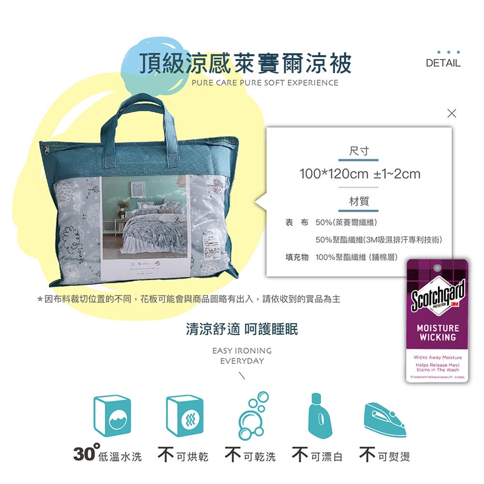 可水洗 (水溫請勿超過30度C) / 可乾洗 / 不可漂白 / 不可烘乾