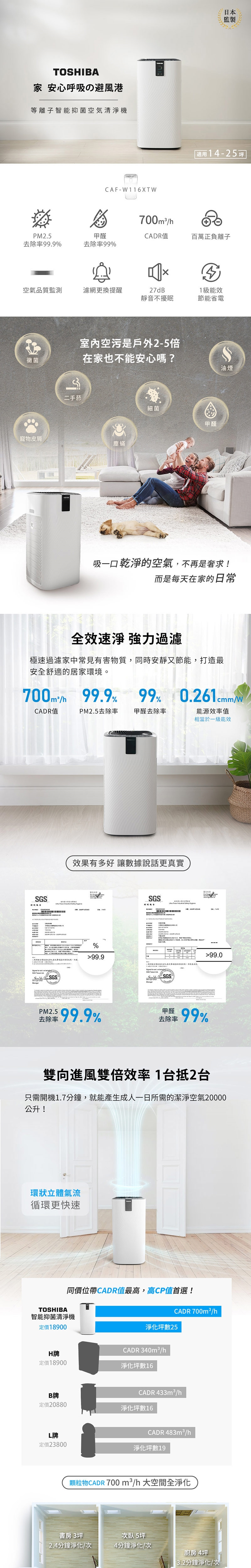 ◆高CADR值可適用單房到整層,一機包辦你家的好空氣。