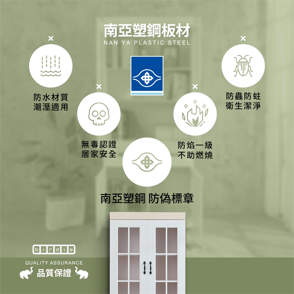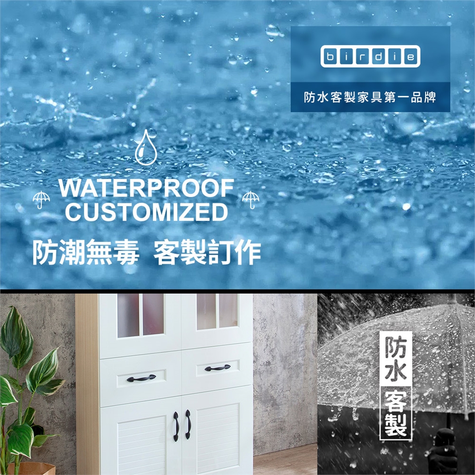 100%徹底防水板材,不怕浸水、適用長期潮濕的環境,可整組水洗清潔更容易,不因潮濕而變形、腐蝕、掀皮;具防蟲蛀抗黴菌特性,防白蟻、蟑螂侵蝕,長久使用也不用擔心塌陷變形!