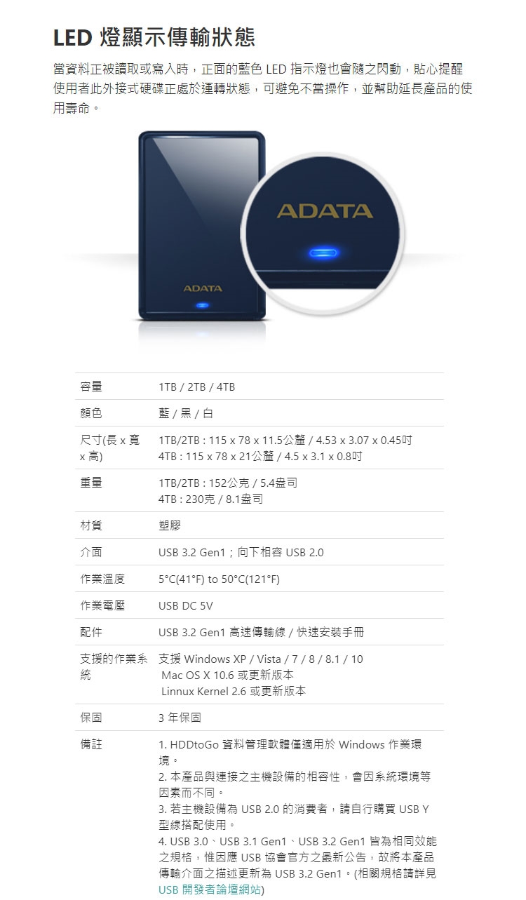 容量/傳輸介面:4T/USB 3.2 Gen1