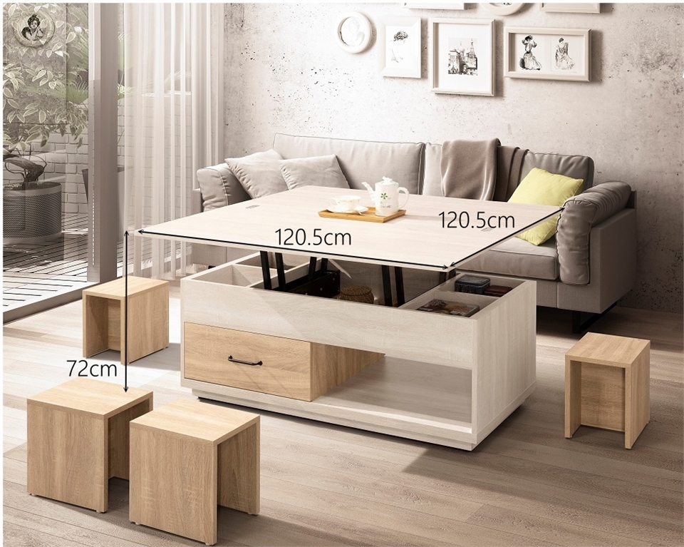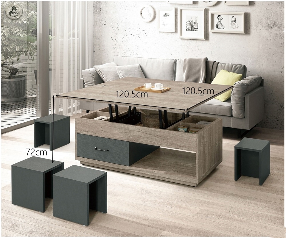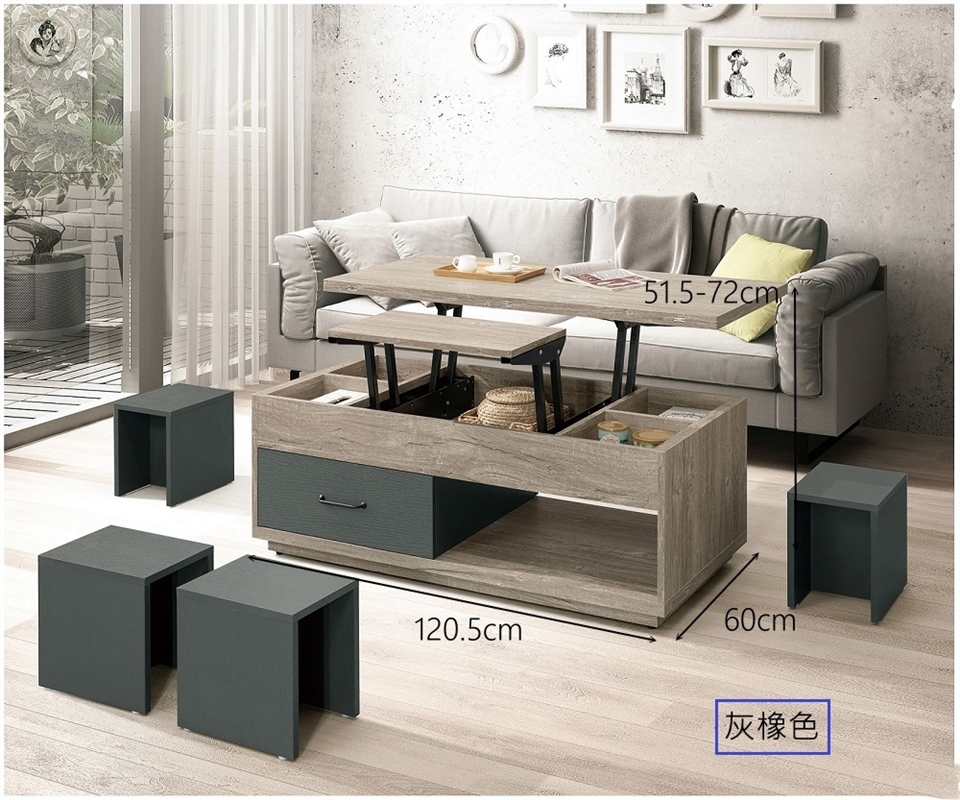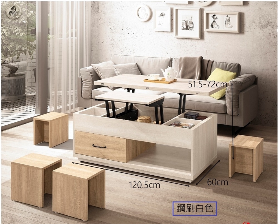 茶几 : 寬 120.5 X 深 60 X 高 51.5-72 (公分)