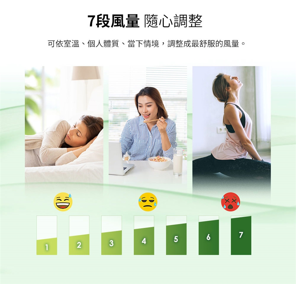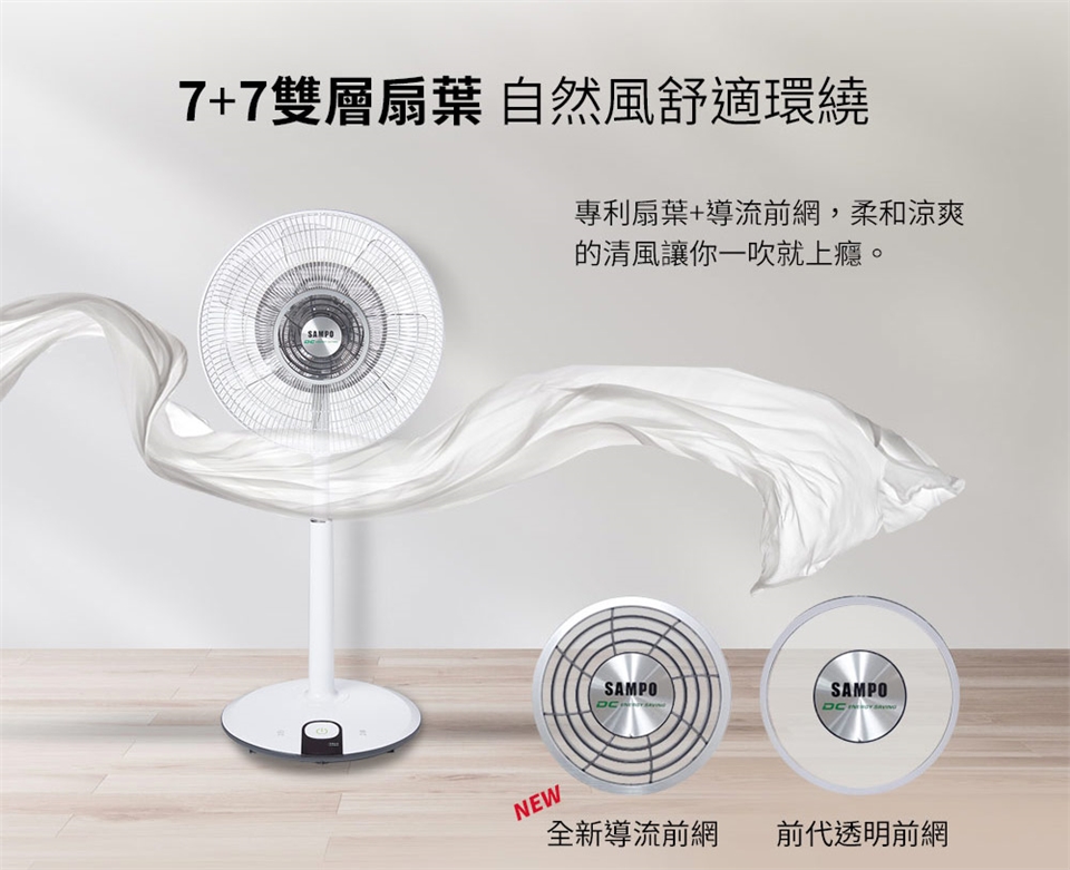 ◆7+7片扇葉搭配專利導流前網,風量大提升。