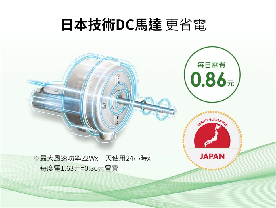 ◆高效能DC節能直流馬達,靜音、低耗電量。