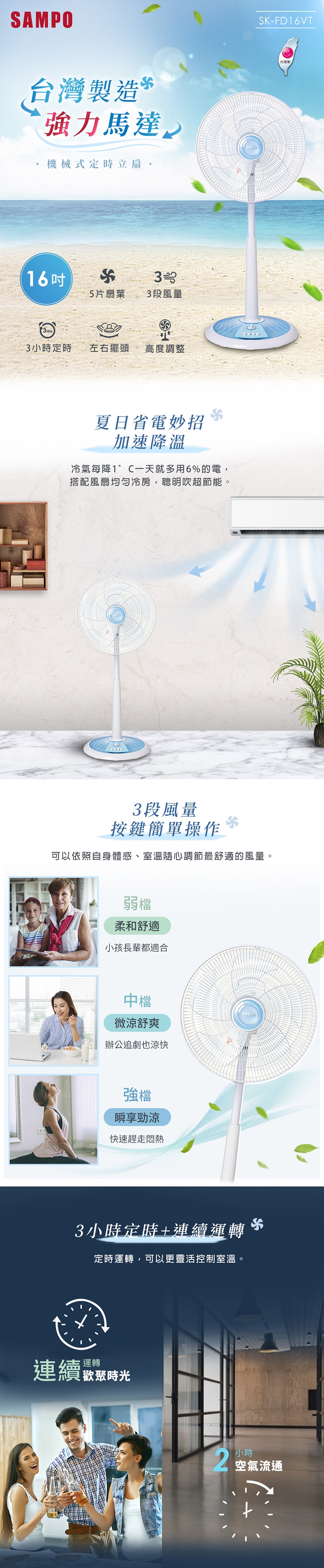 ◆強、中、弱3段風量+180分鐘連續定時,按鍵+旋鈕操作好簡單。