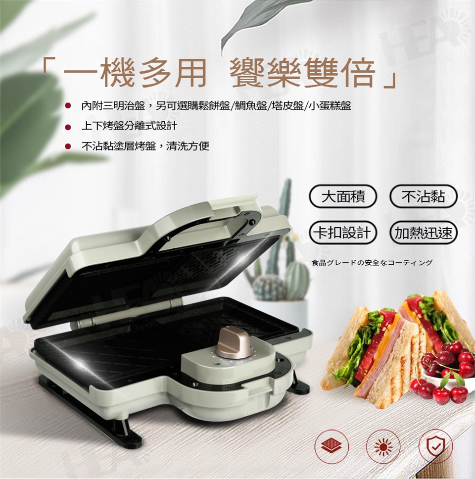 多種烤盤可加購搭配使用,快速又方便料理三明治、烤鬆餅...等,