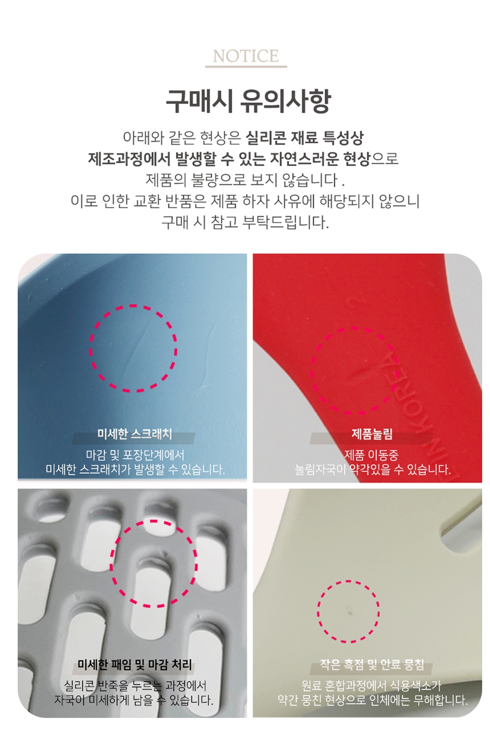 產品上有低於1cm以下白點或黑點都是屬於材質正常現象且不影響使用