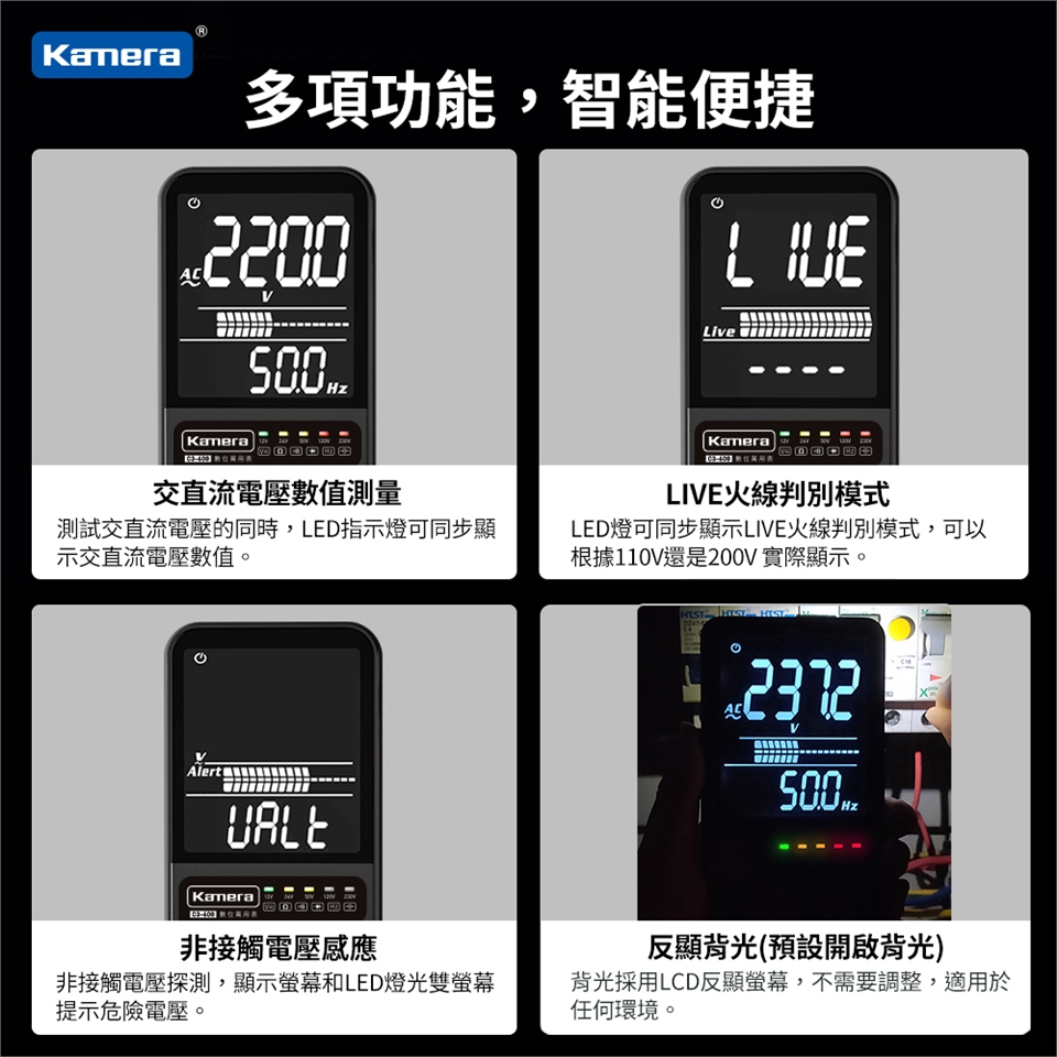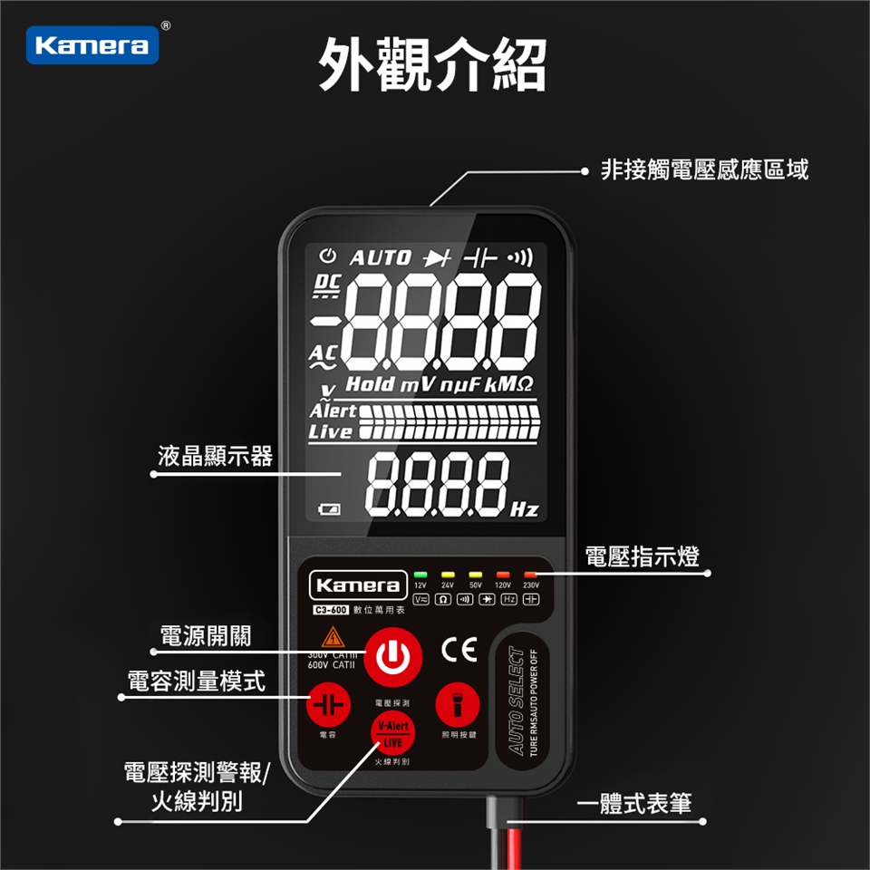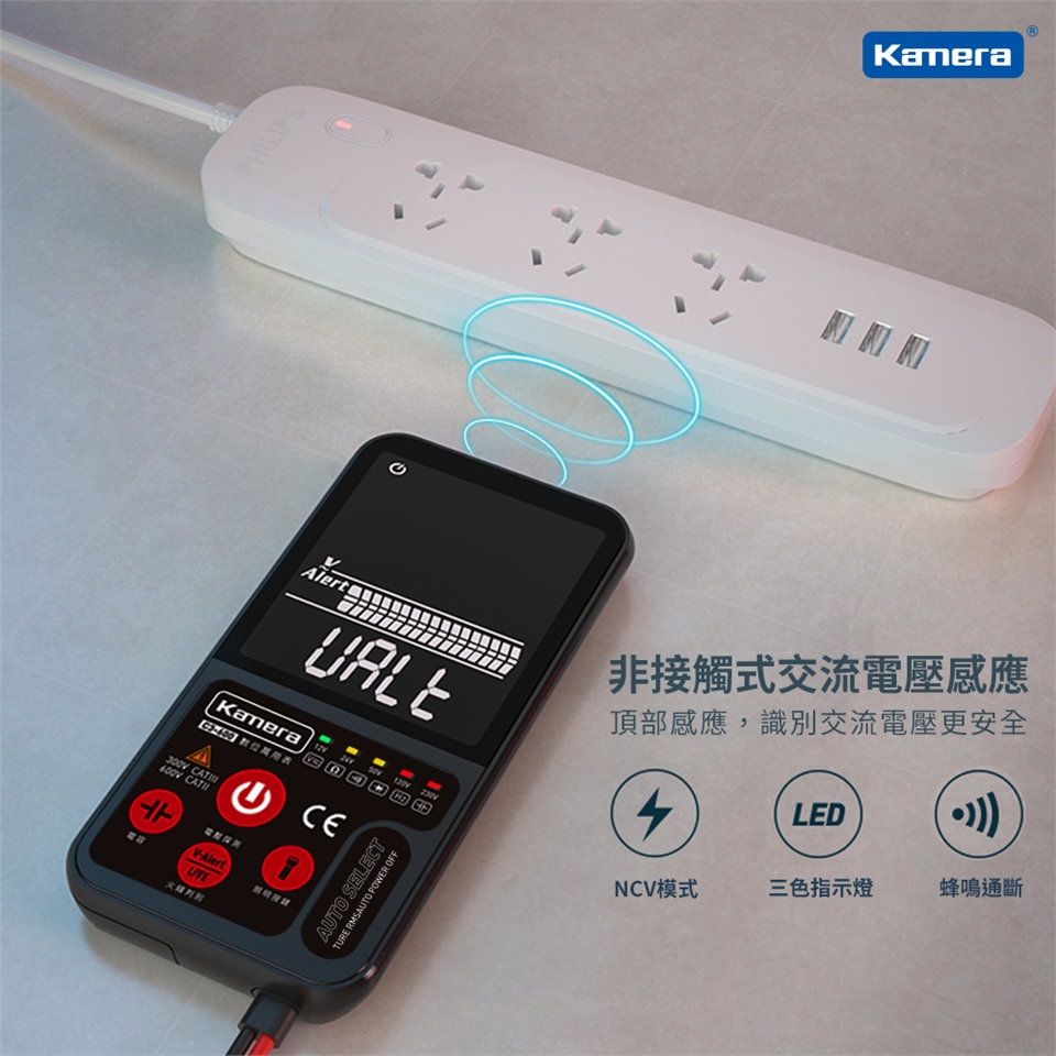 - 非接觸式交流電壓感應,頂部感應,識別交流電壓更安全。