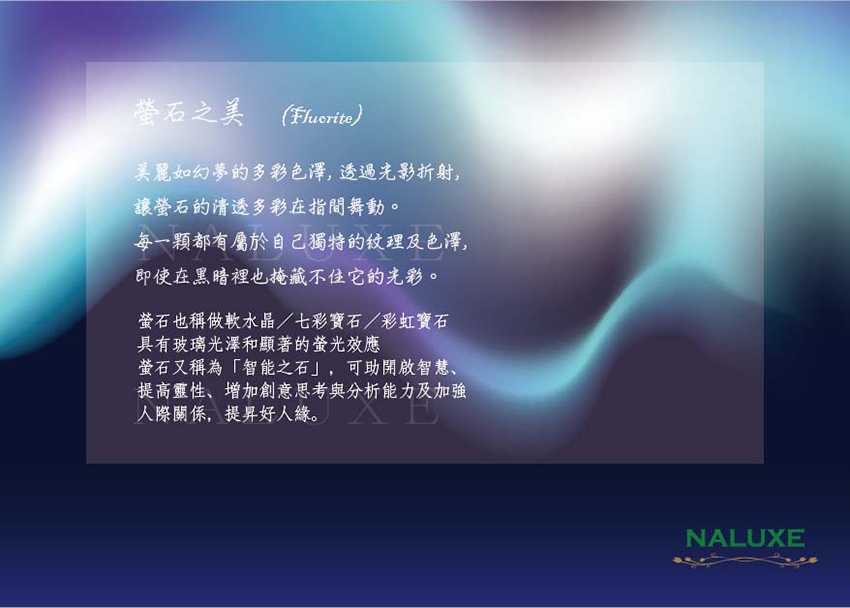 *特別提醒: 螢石硬度不高,配戴時請格外小心碰撞