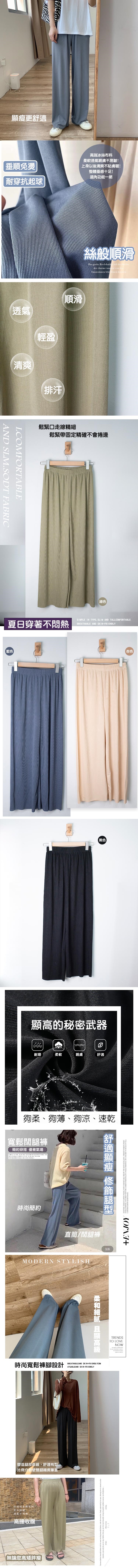 今夏最流行的冰絲涼感拖地寬褲!直播熱銷品!告別大粗腿!不敢穿短褲露出肥肥腿的你有福了!