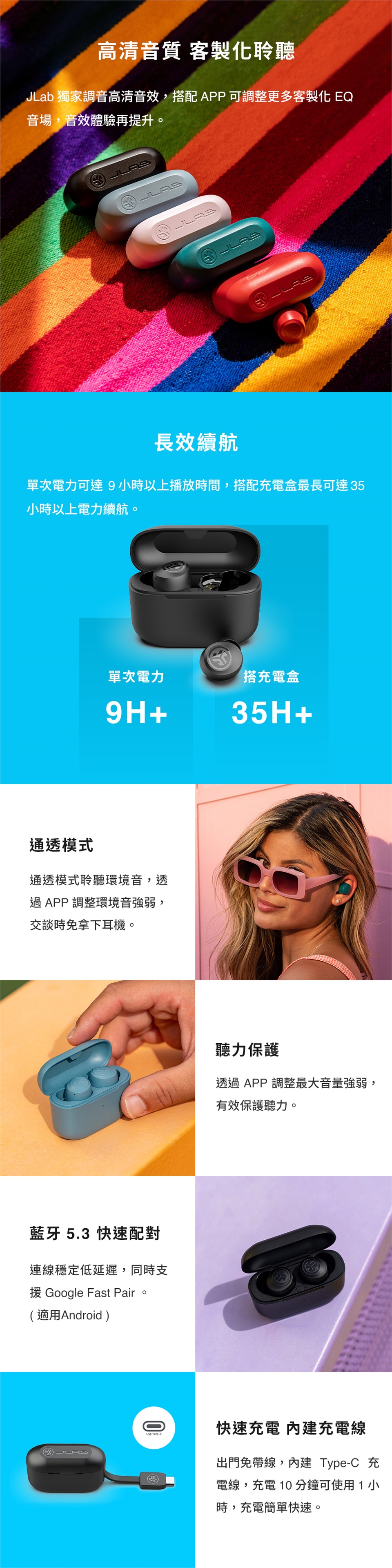 - 續航升級|單次電力9H+,搭充電盒35H+