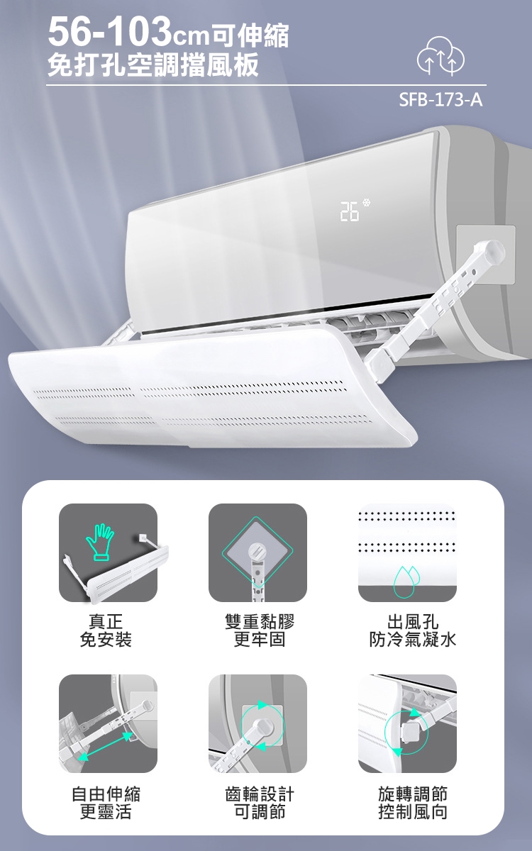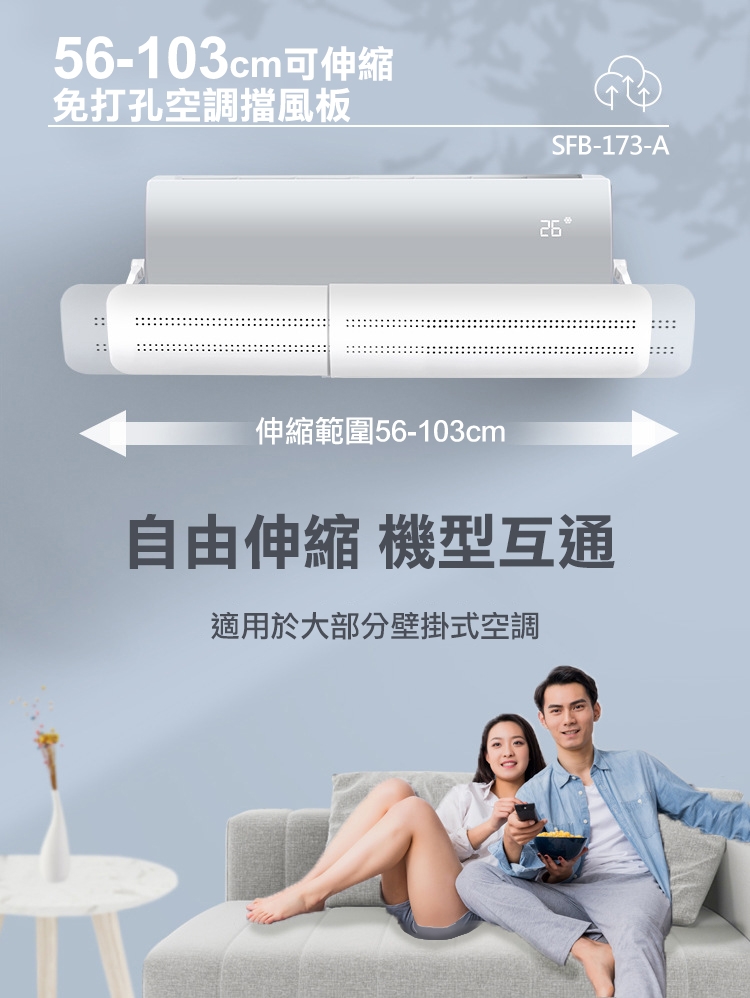 【WIDE VIEW】56-103cm伸縮免打孔空調擋風板(SFB-173-A)