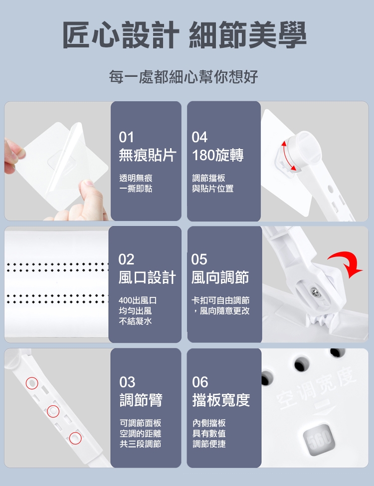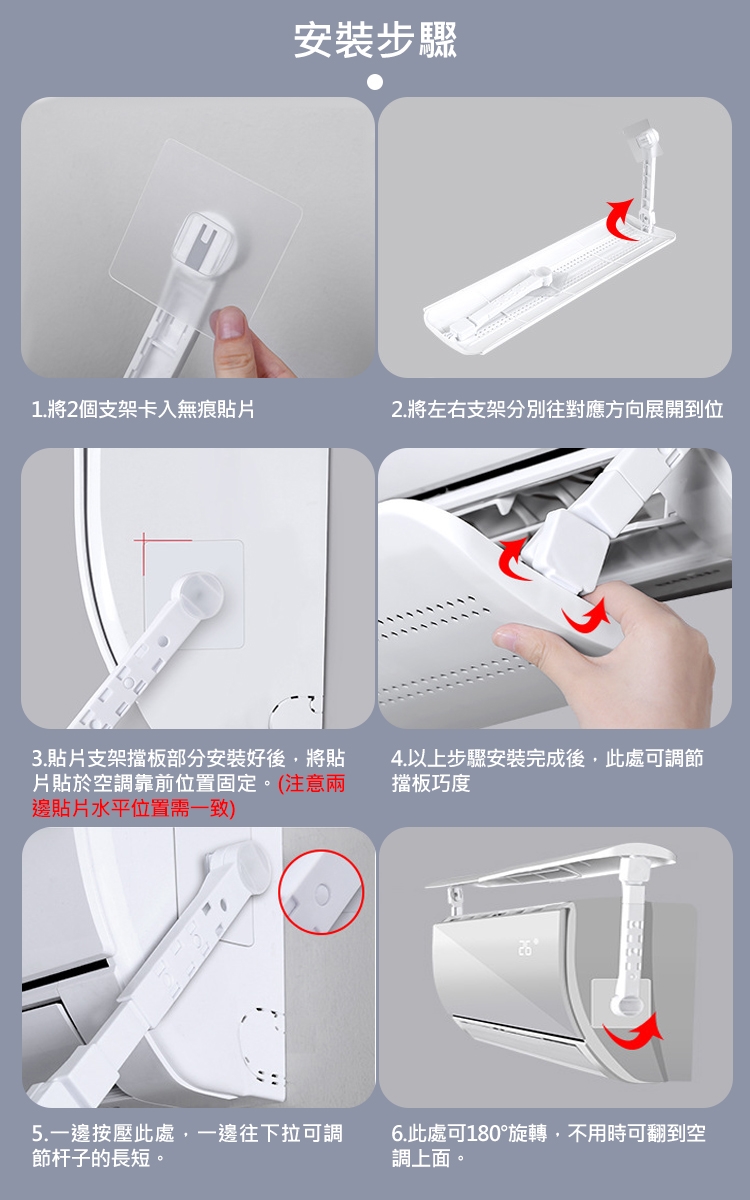 06.無痕貼卡扣可以旋轉180度,不用時可翻到空調上方