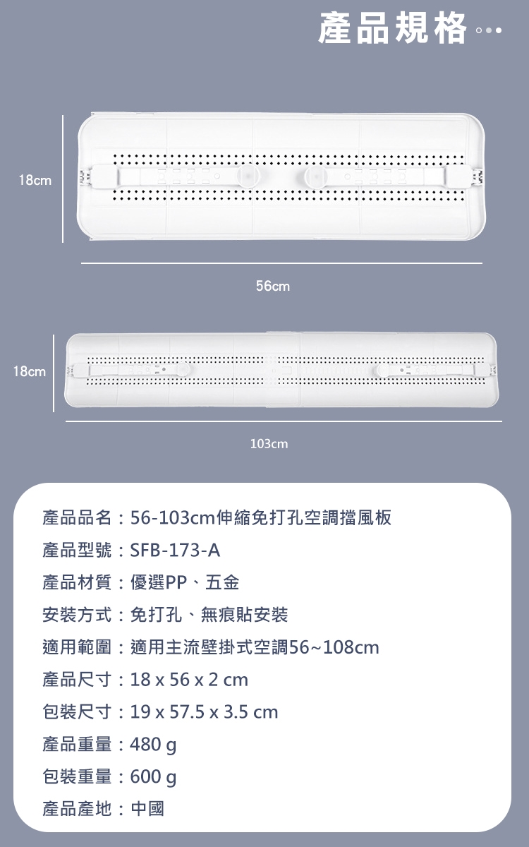 產品品名:56-103cm伸縮免打孔空調擋風板