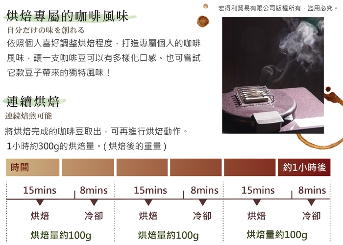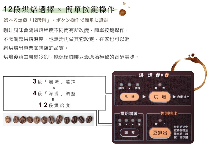焙溫度,也不需要再作任何設定,可依照個人喜好調整烘焙程度,簡單的